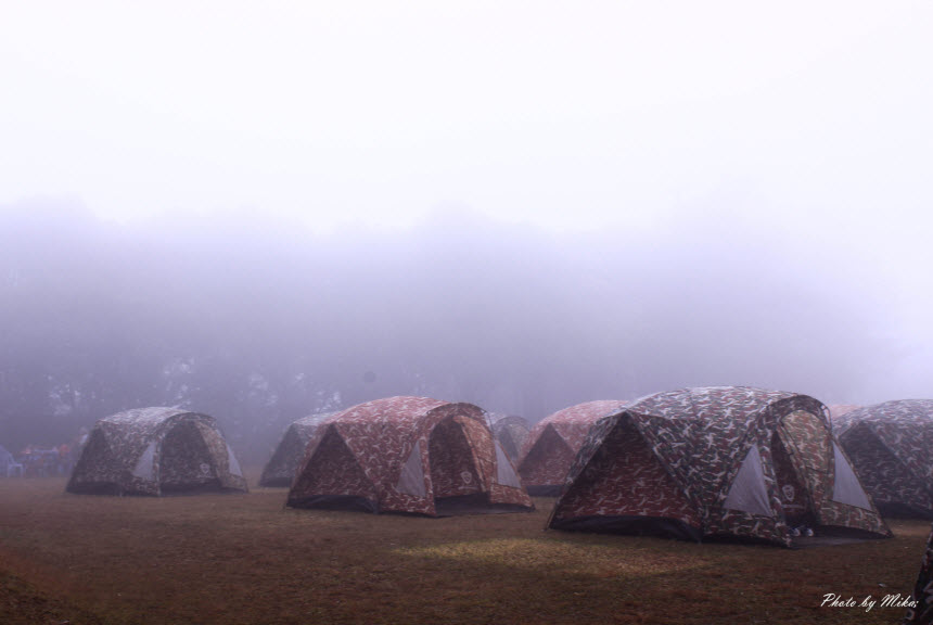 จนถึงลานกางเต็นท์อุณภูมิตอนนี้ประมาณ 15 c ลานถูกเเบ่งเป็นโซนๆ โซน A, B, C, D
