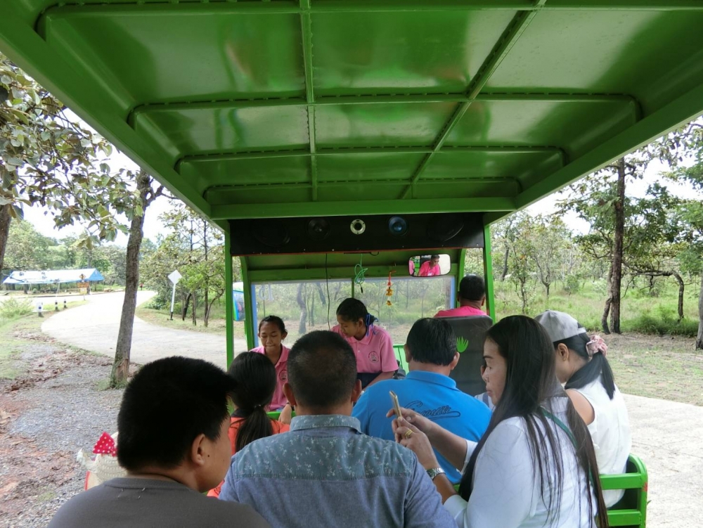 รถไฟ ขบวน 75 ซื้อตั๋วลงที่ บ้านวะตะแบก(อ.เทพสถิต) มีรอบ 8.30 น. เมื่อถึง อาจจะเหมา 3 ล้อขึ้นอุทยานแล้วแต่การตกลง 5555