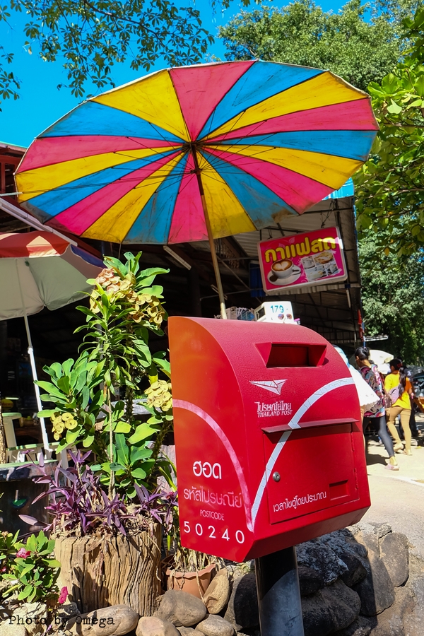 หน้าอุทยานแห่งชาติออบหลวงมีร้านค้าขายข้าว เครื่องดื่ม กาแฟสด และมีตู้ไปรษณีย์เล็กๆ ด้วยนะ ใครอยากส่งความทรงจำในรูปแบบของโปสการ์ดก็เขียนแล้วส่งตรงนี้ได้เลยค่ะ