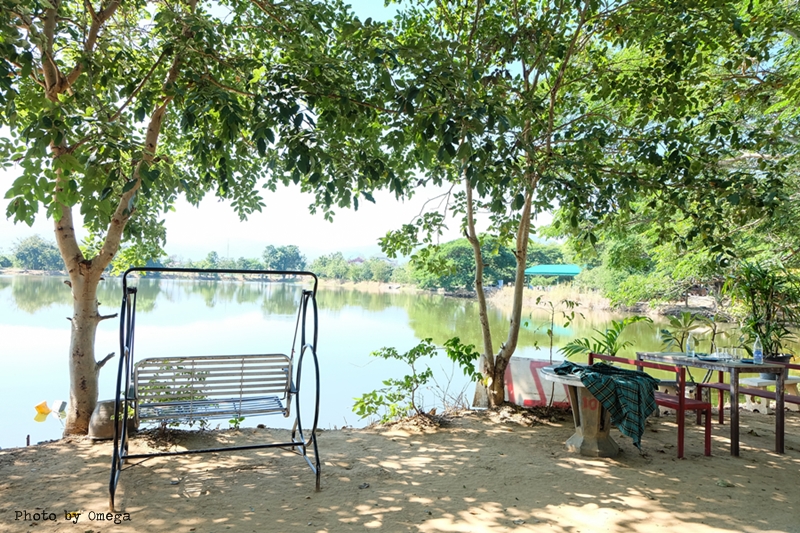 ชิงช้าหน้าร้าน โต๊ะด้านขวา พิเศษมาก อยู่ฝั่งตรงข้ามหน้าร้าน ติดริมน้ำเลย