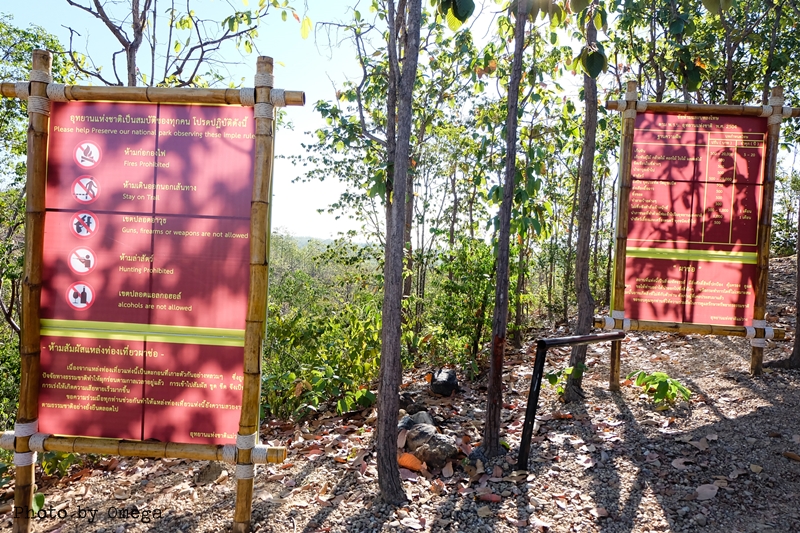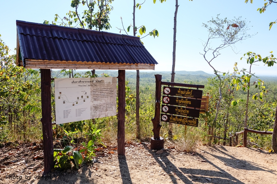 ที่ทางเข้าก็จะมีป้ายห้าม ที่เป็นกฏของอุทยาน เช่น ห้ามก่อไฟ ห้ามเดินออกนอกเส้นทาง เรามาเที่ยวก็ต้องปฏิบัติตามนะคะ  ถัดไปอีกป้ายเป็นเส้นทางศึกษาธรรมชาติผาช่อค่ะ