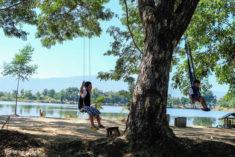 มีลูกค้าเด็กน้อยพี่น้อง มาเล่นชิงช้าที่ต้นไม้หน้าร้านพอดี อิอิ น่ารักม๊ากกก :)