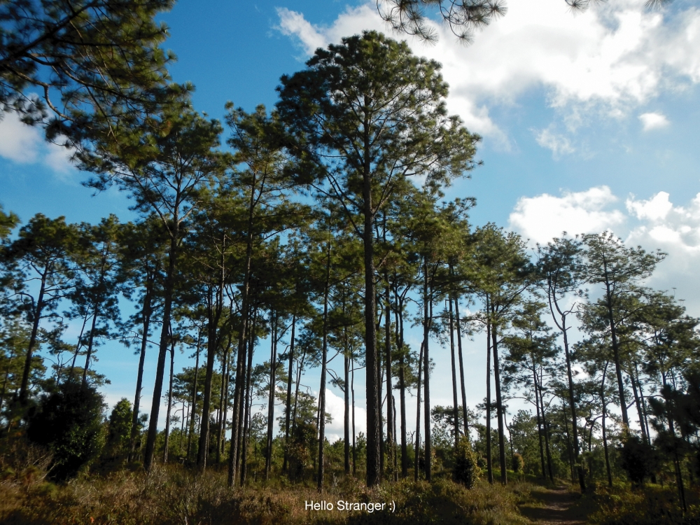 จากป้ายผู้พิชิตภูกระดึง ยังไม่ถึงนะคะ เราต้องเดินทางอีกประมาณ 1 ชั่วโมง ผ่านต้นสนที่เรียงรายอยู่สองข้างทาง เพื่อไปยังลานกางเต๊นท์