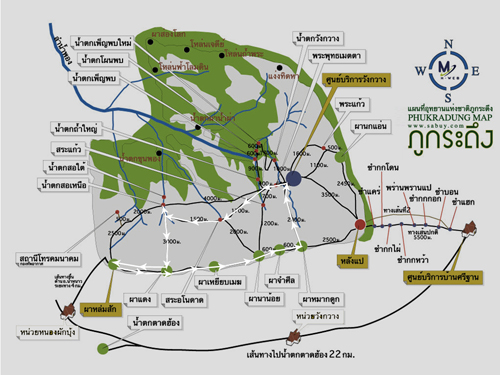 จากแผนที่นี้จะเห็นว่าเราสามารถเลือกทางเดินได้สองทางหลักที่จะไปผาหล่มสัก คือทางที่ไปด้านน้ำตกกับทางที่มาทางเส้นหน้าผา ครั้งนี้เรากับเพื่อนๆเลือกที่จะไปทางน้ำตกค่ะ