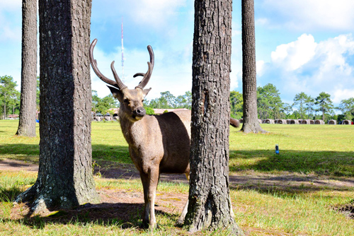 14.00 น. เราเลือกที่จะไปกินข้าวกลางวันกันแถวนั่น มีร้านให้เลือกมากมาย ส่วนมากเมนูก็จะเหมือนๆกัน ราคาก็จะเท่าๆกันค่ะ โดยเฉลี่ยจะอยู่ที่มื้อล่ะ 100 บาท (รวมน้ำและอาหารจานเดี่ยว) นอกจากจะได้กินข้าวไปยังจะได้เล่นกับกวางด้วย ใช่ค่ะ กวางตัวเป็นๆ เท่าที่เห็นจะมีอยู่ 3-4 ตัว นะคะ ระหว่างเรากินเค้าก็จะมาเดินป้วนเปี้ยนขออาหาร บางตัวก็จับได้