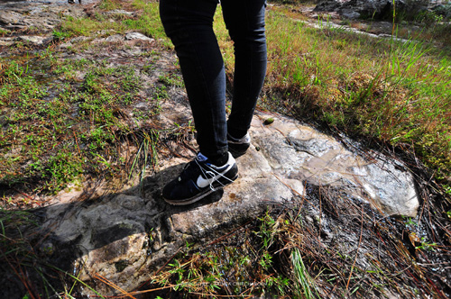 เนื่องจากระยะทางที่เราต้องเดินค่อนข้างเยอะ และแถมยังมีบางจุดที่ลื่นและต้องปีนป่าย (ช่วงที่เราไปมีฝนตกเพราะฉะนั้นบางช่วงจะค่อนข้างลื่นและแฉะ) รองเท้าที่ดีจึงเป็นสิ่งที่สำคัญมากๆ แนะนำว่าเป็นผ้าใบที่ใส่สบายไม่เจ็บ หรือถ้าใครยังไม่มีรองเท้าเดินป่า เราขอแนะนำ ‘สตั๊ดดอย’ มีขายบริเวณตีนภู คู่ล่ะประมาณ 80 บาท ถูก ดีและทน มันจะเป็นรองเท้ายางสีดำตรงพื้นจะคล้ายๆรองเท้าสตั๊ดเตะบอล การันตีความดีและเหมาะต่อภูกระดึงจากการที่ลูกหาบแทบทุกคนใช้