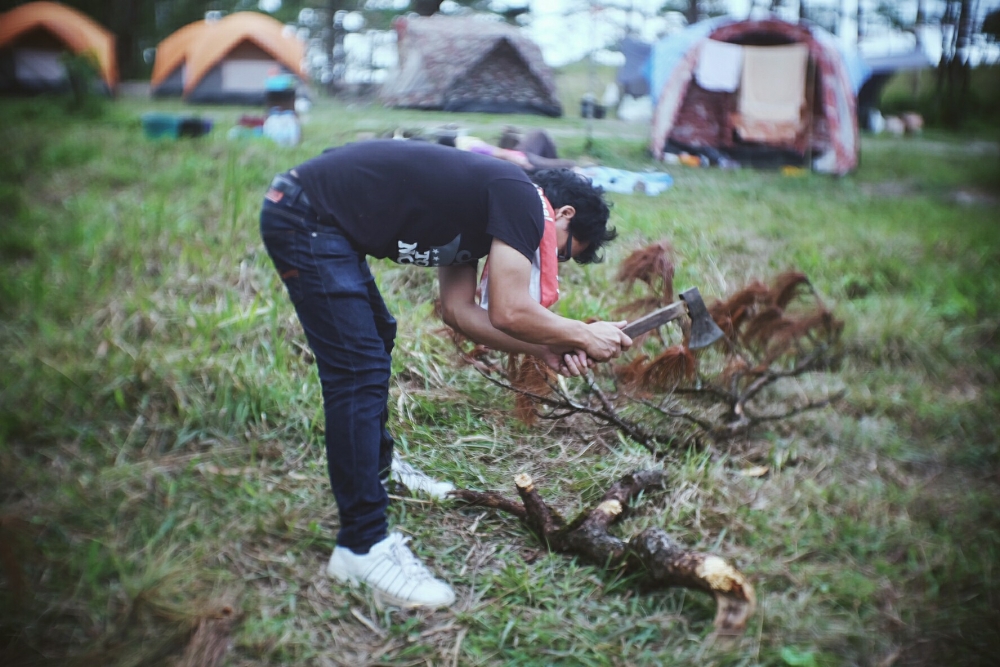 ณ ที่แห่งนี้ ต้องก่อไฟเพื่อทำอาหารเย็น น้องๆยืมขวานจากเจ้าหน้าที่ ผมทำหน้าที่หาฝืนด้วยขวานนั้น...5555 (ภาพ:น้องพลอยสาว Zoo)