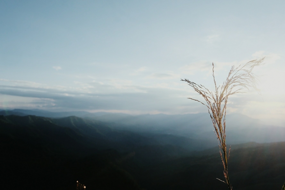 เดินวนไปเรื่อยๆ มีหมอกบางๆ ลอยเหนือยอดหญ้าครับ...(ปล. กางเกงเปียกเละเทะ)
