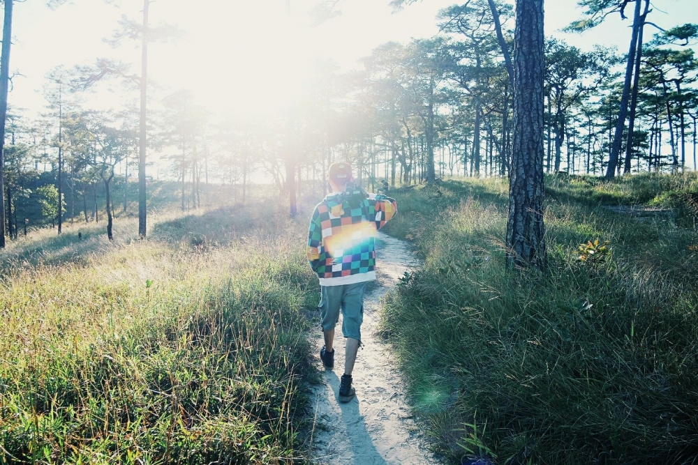 จากภาพผมเดินรั่งท้ายคับแบกขาตั้ง...(อยากโชว์ตัวนิดหน่อย..ครับ) เดินไปเรื่อยๆผ่านป่าสน