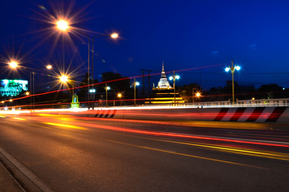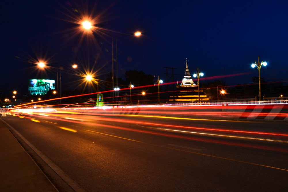 แสงธรรมชาติหมดไปละ ทีนี้ไปเก็บแสงอย่างอื่นดีกว่า แสงอะไรเหรอ? แสงของรถที่วิ่งไปมาไง(ถามเองตอบเอง เพราะอยู่ตัวคนเดียวไม่รุ้จะคุยกะใคร คุยกะตัวเองไปก่อน 55)