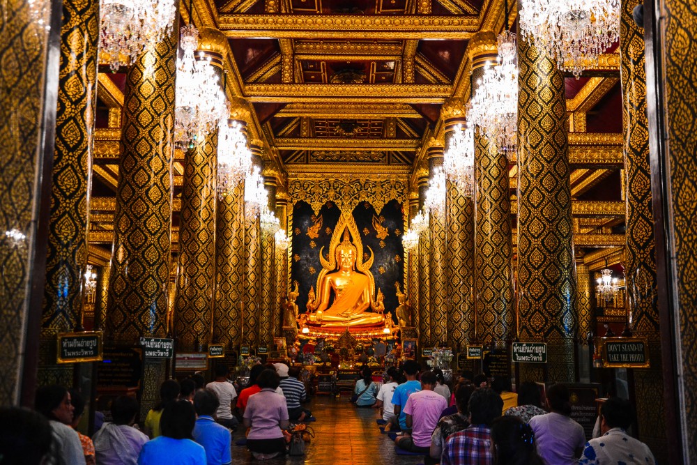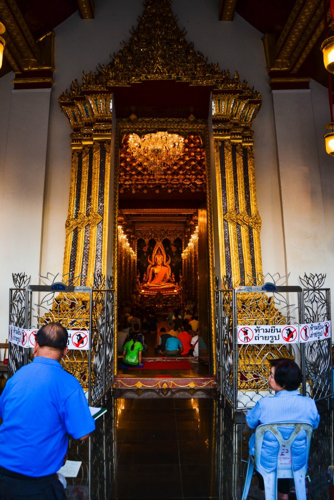 หน้าทางเข้าอุโบสถ จะเห็นองค์พระพุทธชินราชเด่นชัดมาก คนมากถ่ายรูปเยอะมาก ผมก็รอคนน้อยๆจึงได้ภาพมา