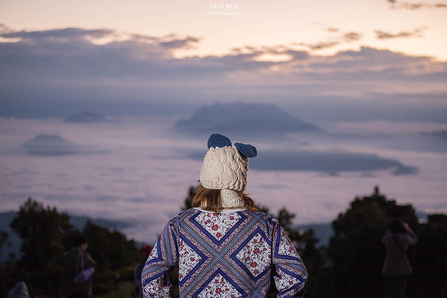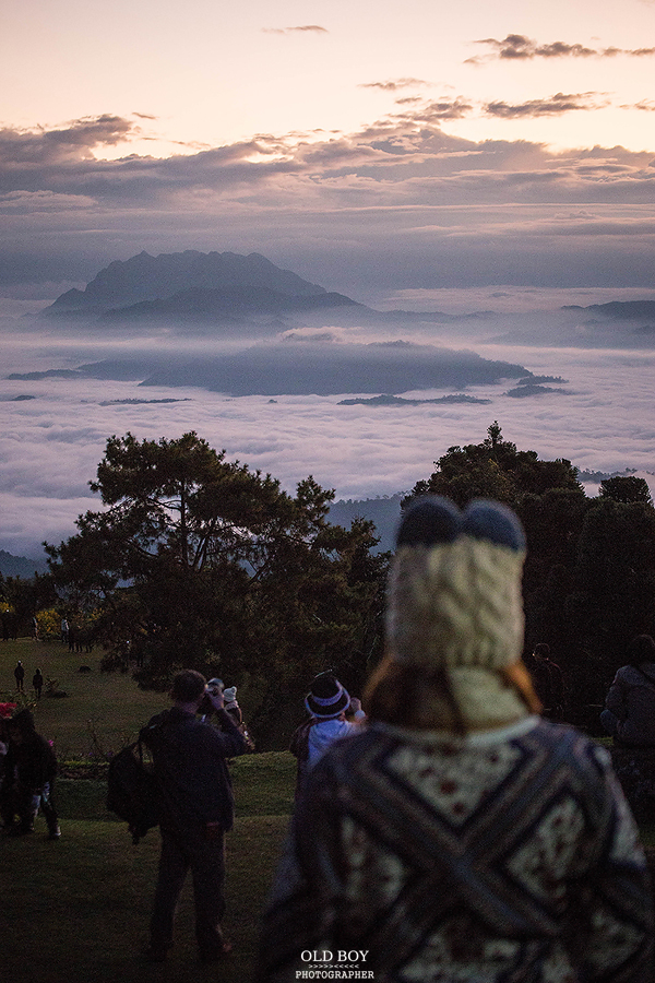 เรามาถึงตั้งแต่ยังไม่สว่าง แต่มีนักท่องเที่ยวหลายกลุ่มทยอยกันขึ้นมาชมวิวทะเลหมอก และพระอาทิตย์ขึ้น (ส่วนใหญ่จะไม่ได้พักในอุทยานฯ) ผมเริ่มเก็บภาพไปเรื่อยๆ จนกระทั่งแสงแรกแห่งวันมา