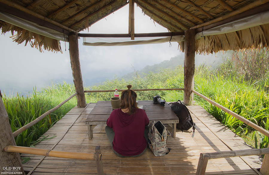 ก่อนกลับผมแวะถ่ายรูปอีกครั้งตรงศาลาริมทางก่อนถึงจุดบริการนักท่องเที่ยว เวลาประมาณ 9 โมงครึ่ง ครับ แต่ทะเลหมอกก็ยังแน่นและสวยอยู่