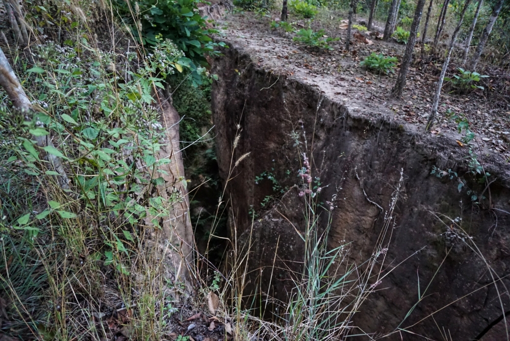 ออกจากกองแลนมา ขับไปก็เจอป้ายน้ำตกแพมบกทางซ้าย เลยเลี้ยวเข้าไปดู เข้าไปตามทางเจอป้าย Land Spit เลยแวะดูสักหน่อย ที่นี่น่าจะเป็นของชาวบ้านท้องถิ่น เป็นรอยแยกแผ่นดินบนเนินเขา ค่าเข้าแล้วแต่จะให้ มีน้ำกระเจี๊ยบเย็นๆบริการนักท่องเที่ยว เริ่มมืดแล้ว เราเลยตกลงกันว่าไม่ไปน้ำตกแล้ว จะไปกินข้าวแทน
