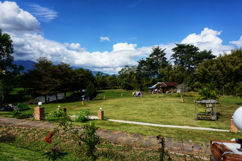 ลานกางเต็นท์ที่นี่ถ้าต้องการติดริมแม่น้ำ ต้องโทรจองล่วงหน้าก่อน ตอนเราไปที่ริมแม่น้ำเต็มหมดแล้ว เราเลยเลือกที่ตรงกลาง เพราะใกล้ห้องน้ำ