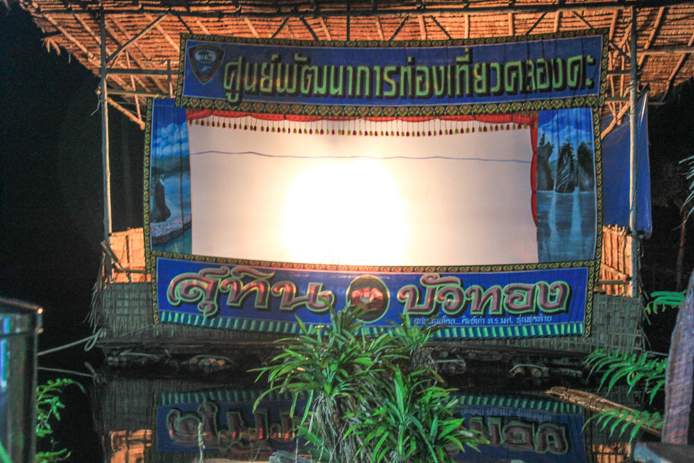 .........ขณะกินยังมีหนังตะลุงให้ดูด้วย โห!!! เจ๋งอ่ะ  เพลินเลยทีนี้ ฟังไปฟังมาเอะ!!! ทำไมเสียงคุ้นๆ จัง จนถึงบางอ้อว่าเป็นพี่สุทินเจ้าหน้าที่นี่เอง เก่งจริงๆพี่แกทำทุกอย่างเลย ทั้งกล่าวต้อนรับ ดูแลนักท่องเที่ยว ติดต่อห้องพัก นี่มาพากย์หนังลุงอีก สุดยอด!!!! ขอคาระวะเลย