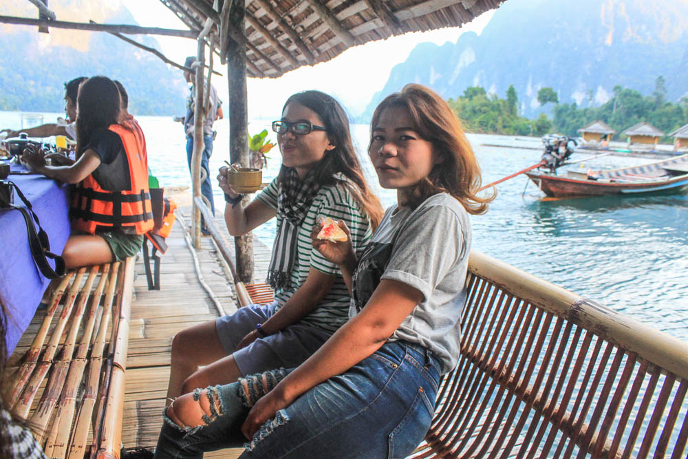 ..........เรามาถึงราวๆ 11 โมงเช้า เจ้าหน้าที่มายืนต้อนรับก่อนขึ้นแพอย่างน่ารัก และถามด้วยความห่วงใยว่าทานข้าวกันมารึยัง คงเห็นหน้าตาพวกเราบ่งบอกว่าหิวโหยมากๆแน่ 55 ตอบเลยข้าวเช้าก็ยังไม่ถึงท้อง (ได้ข้าวว่ากินข้าวเหนียวหมูปิ้งไปแล้วนิ นั่นมันแค่ออเดิร์ฟเรียกน้ำย่อย โธ่ จะไปพอยาไส้อะไร) ป้าเลยถามว่าจะทานมั้ย ที่นี่มีอาหารตามสั่งแล้วก็อาหารเป็นชุด พวกเราตกลงกันว่ากินตามสั่งกันไปก่อนแล้ว ตอนเย็นค่อยกินเป็นชุด ....หลังจากเก็บข้าวของจับจองพื้นที่ เราก็เก็บภาพบรยากาศรอบๆที่พักกันอย่างฟิน!