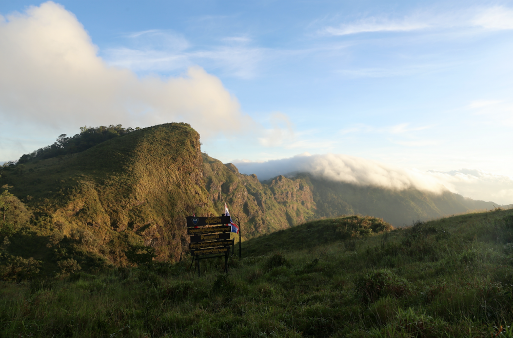 เมื่อถึงยอดเราก็จะเห็นป้ายอุทยานต้อนรับผู้พิชิตครับ