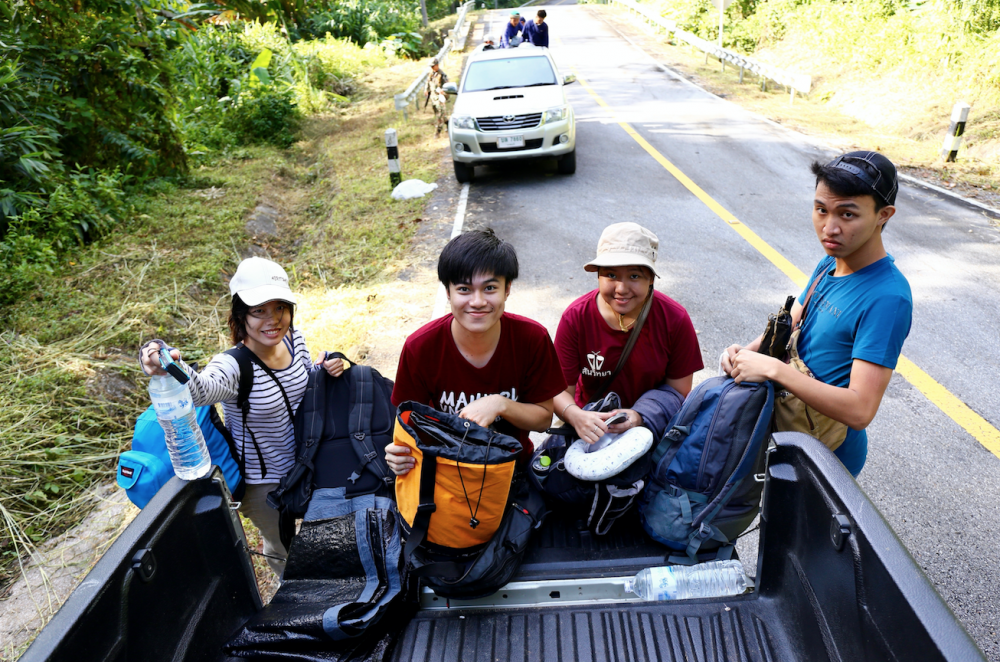 นั่งรถเจ้าหน้าที่ประมาณ 20 นาที ก็จะถึงจุดเริ่มต้นการเดินเท้าครับ (เวลาประมาณ 08.50 น.)