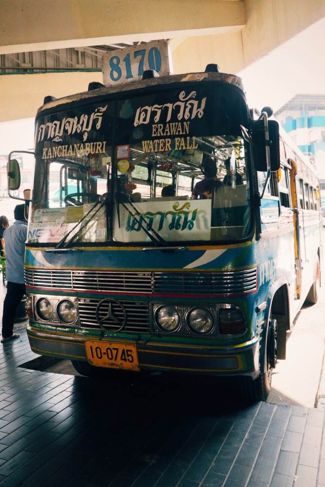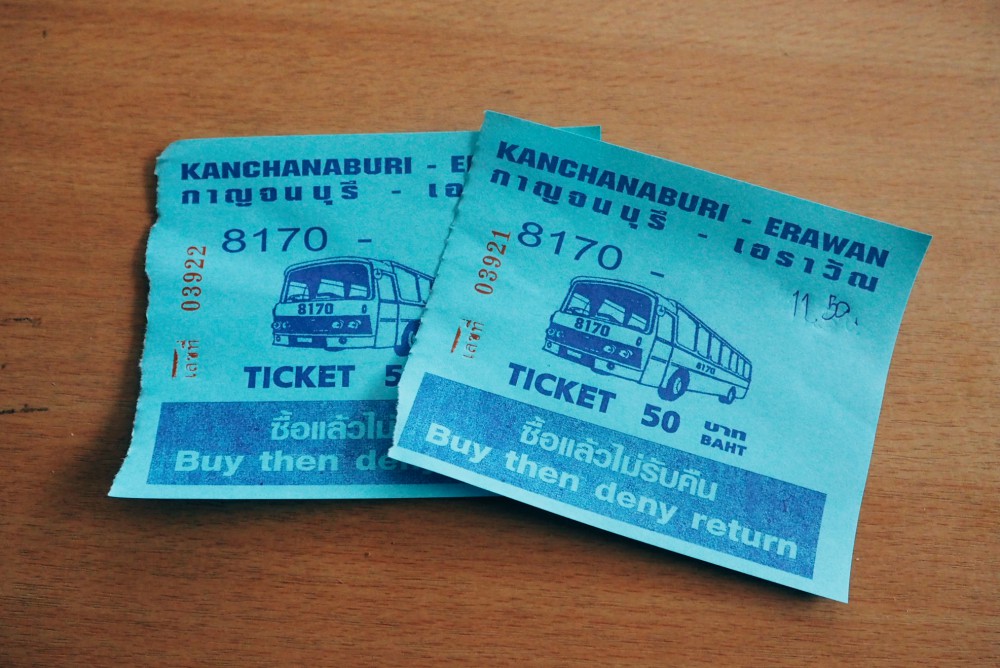 พอถึงบขส.ก็ตรงดิ่งไปซื้อตั๋วรถบัส(รถหวานเย็น)ไปน้ำตกเอราวัณคนละ50บาท tadaaa~ ได้ตั๋วมาแล้วววววว