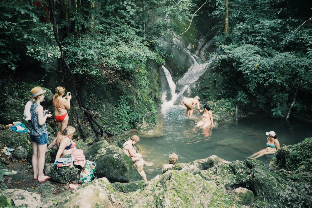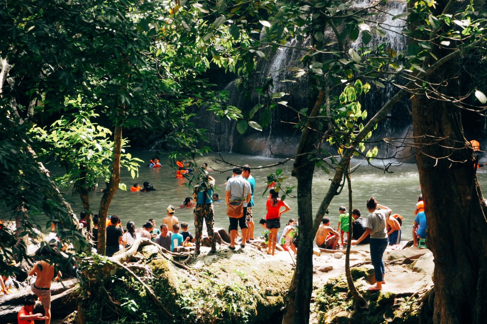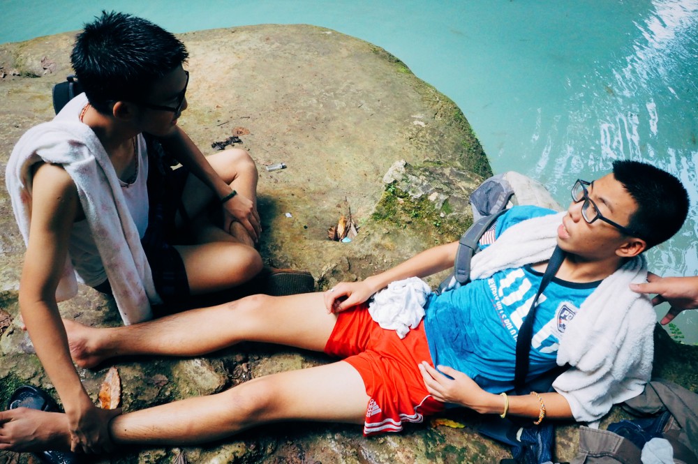 บังเอิญจริงๆค่ะ น้องๆม.ปลายที่มีน้ำใจกับพวกเราตอนที่อยู่บนรถสองเเถวก็มาเที่ยวที่เดียวกัน น้องๆบอกว่ามาติวหนังสือกันที่กาญจนบุรี ในใจก็คิดว่าพวกนี้หนีพ่อแม่มาเที่ยวกันแน่ๆ ใช่ค่ะคิดไม่ผิด มันหนีพ่อแม่มาเที่ยวแล้วต้องรีบกลับให้ทันเวลา นั่นก็คือต้องกลับให้ทันรถบัสคันสุดท้ายเหมือนพวกเรา เราก็ตัดสินใจร่วมทริปกันกับน้องๆค่ะ Deal!