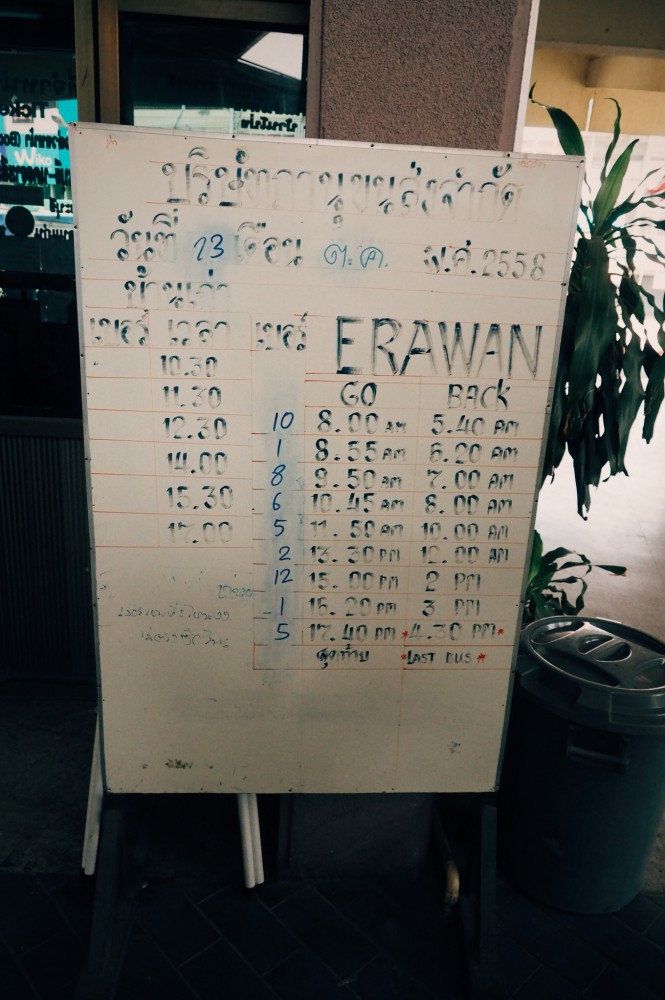 จากบขส.ไปอุทยานแห่งชาติเอราวัณใช้เวลาประมาณ1ชั่วโมง45นาที (รถออก11.45 ถึงประมาณ13.30)