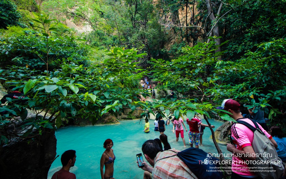 ผมเดินผ่านน้ำตกวังมัจฉา พร้อมกับการลั่นชัตเตอร์เก็บภาพสวยๆเอาไว้อย่างใจเย็น น้ำบริเวณนี้ดูใสคล้ายสีหยก อีกทั้งบริเวณนี้ก็ดูกว้างขวาง น้ำตกวังมัจฉาดึงดูดให้ผู้คนมากมายเข้ามาจับจองพื้นที่เล่นน้ำกันอย่างสนุกสนาน แม้น้ำตกชั้นที่สองนี้อาจไม่ใช่จุดหมายปลายทางของเรา แต่มันก็เป็นเหมือนพื้นที่ที่ทำให้ผมรับรู้ได้ว่า พื้นที่ความสุขอาจไม่จำเป็นต้องไปถึงจนไกลที่สุด แค่เพียงเรารู้ว่าเราควรจะหยุดอยู่กับใครและสถานที่แห่งใดก็พอ