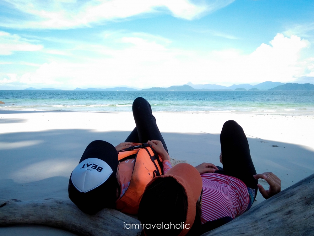 ด้านบนชายหาดจะเต็มไปด้วยต้นสน มีร่มเงาให้ได้นั่งพักผ่อน เราใช้เวลาพักผ่อน แล้วก็ถ่ายรูปเล่นอยู่บนเกาะนี้ค่อนข้างนานเหมือนกัน