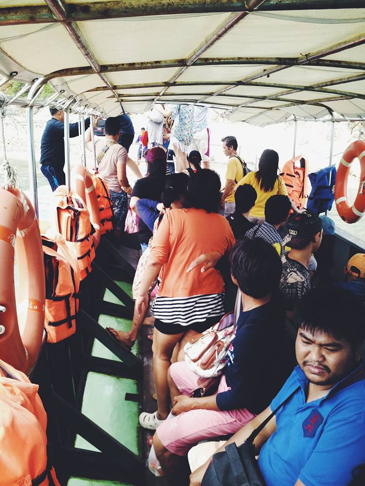 ระหว่างทางนั่งเรือประมาณ 15 นาที จะมีพี่ทหารคอยมาขายอาหารปลา ขายมะม่วง ไอติม และให้การบรรยายไปช่วงแรกของการนั่งเรือ ใครเมาเรือก็เตรียมยาดม เตรียมหมวกมา กันร้อนสักหน่อย