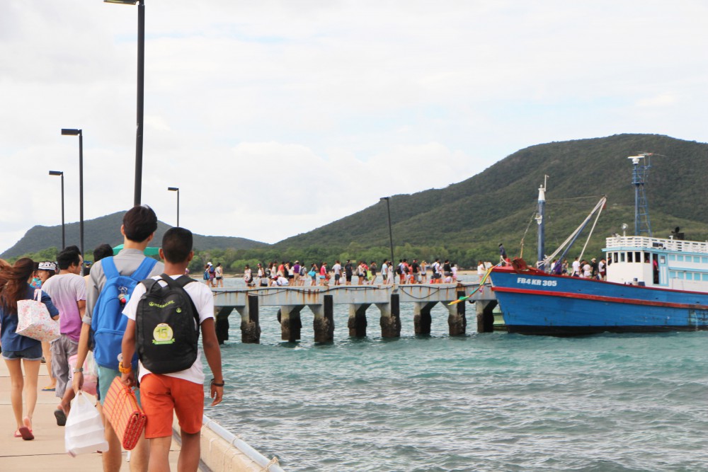 รถพร้อม คนพร้อม เตรียมการเดินทาง จำได้ว่าตอนไปแสมสารต้องไปจองคิวแต่เช้าเลยได้รอบเรือตอน 11 โมง (รอบที่ 2) ครั้งนี้ไม่พลาดต้องได้รอบแรก ตอน 9 โมง เลยออกเดินทางจากฉะเชิงเทรา ตี 4 ครึ่ง ถึงที่ขายตั๋วประตูทางเข้าค่ายกรมการก่อสร้างและพัฒนา หรือไปที่ท่าเรือหมาจอ