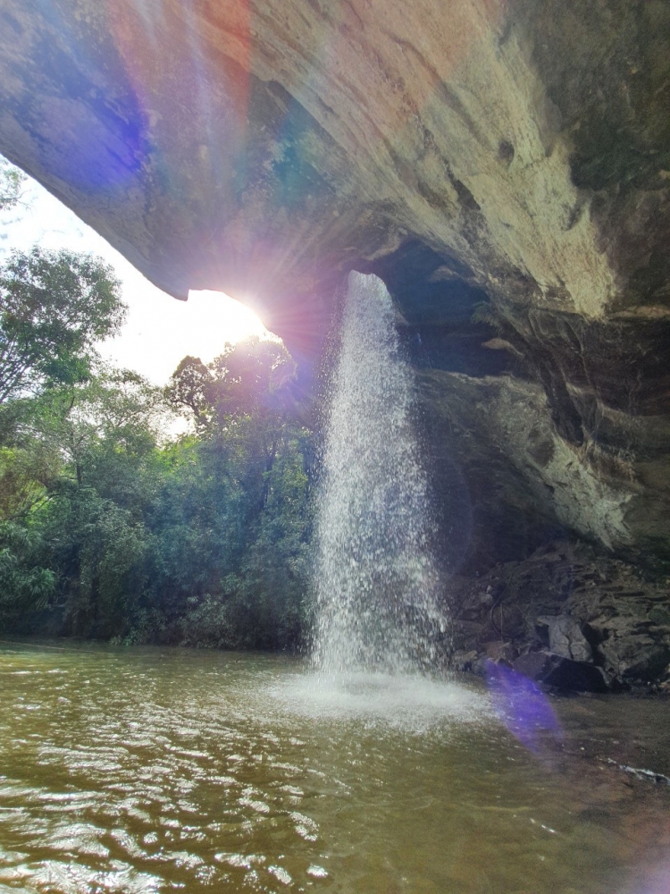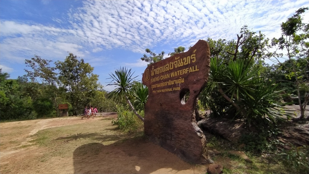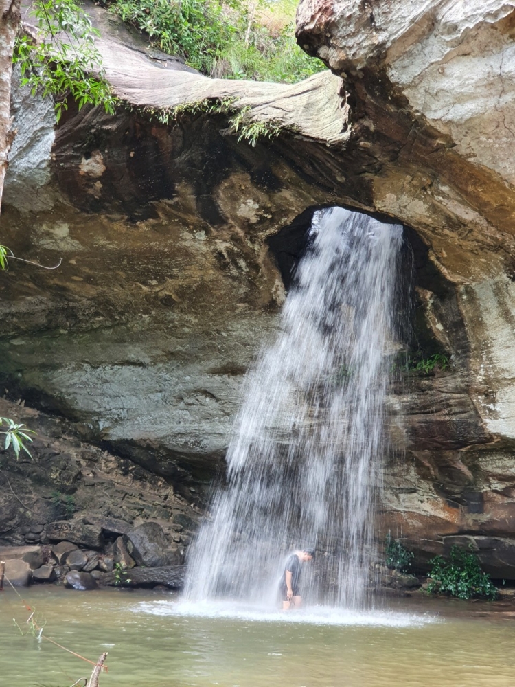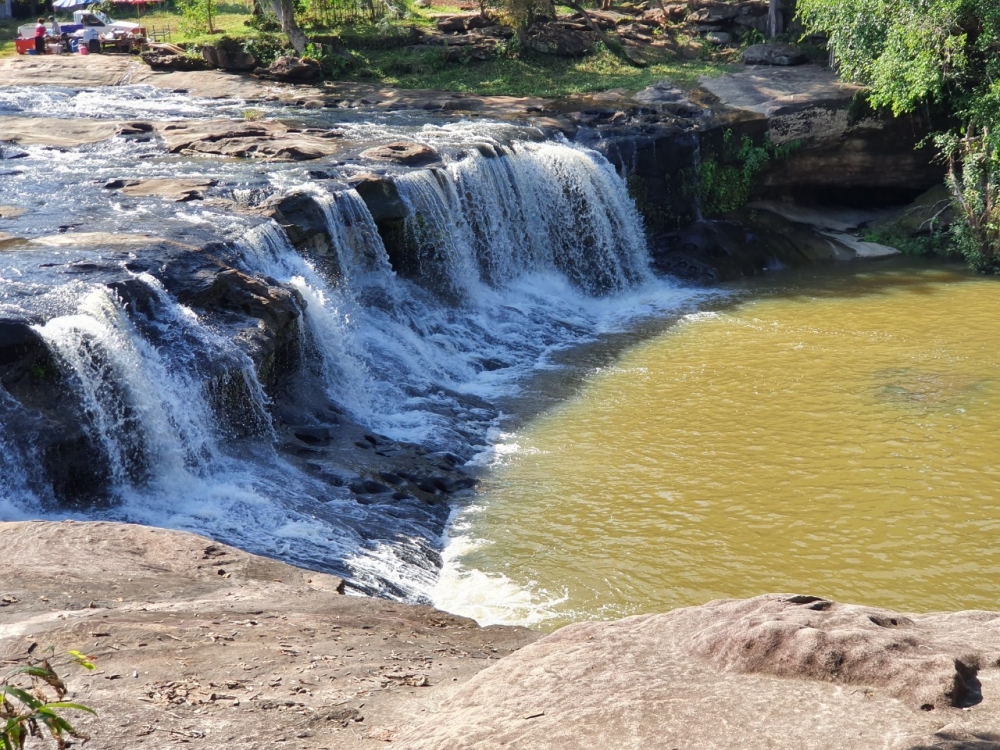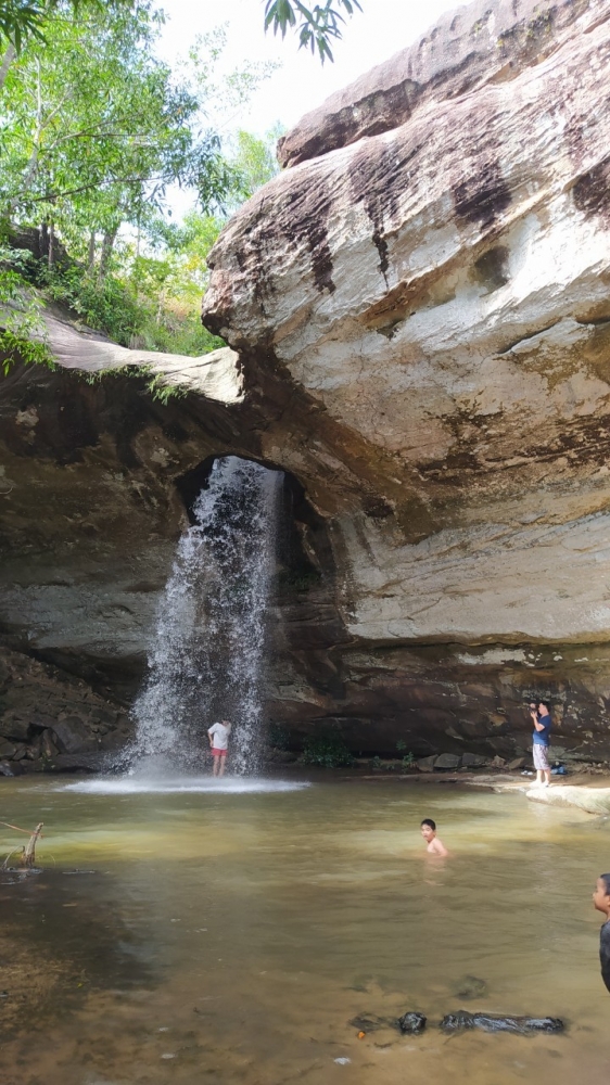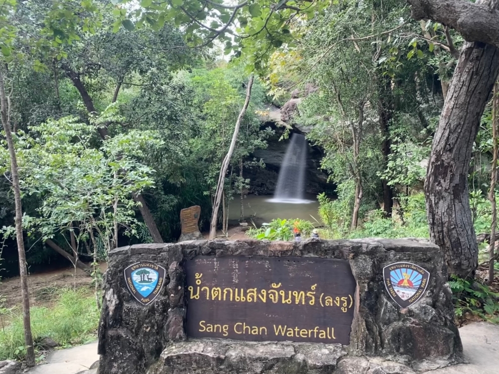 ความสวยงามที่น่าอัศจรรย์ของธรรมชาติที่สร้างขึ้น เชิญชวนให้ผู้คนได้เข้าไปหลงเสน่ห์และสัมผัส เดอะแก๊งฯ ติดหล่มอยู่กับความสวยงามของธรรมชาติ จนต้องกระตุ้นกันเองว่า ไปต่อ>>กันเถอะ 5555 ไปต่อกันที่น้ำตกแสงจันทร์ หรือน้ำตกลงรู ตั้งอยู่ที่บ้านตั้งอยู่ที่บ้านทุ่งนาเมือง ตำบลนาโพธิ์กลาง อำเภอโขงเจียม น้ำตกแสงจันทร์เป็นน้ำตกขนาดเล็กที่มีมวลน้ำไม่มากนัก แต่มีความสวยงามมาก เพราะธรรมชาติที่รังสรรค์ให้เป็นรูที่เกิดจากการเซาะและการไหลผ่านของน้ำ ทำให้มีการกร่อนของหินเป็นรู ร่องน้ำตกจากด้านบนค่อนข้างสวยงานแต่ก็ซ่อนไปด้วยความน่ากลัว หากใครคิดอุตริไปถ่ายเซลฟี่ใกล้ๆ อาจมีสิ้นโดนกระแสน้ำพัดลงรู อึ๊ยยยย แค่คิดก็เสียวแล้ว