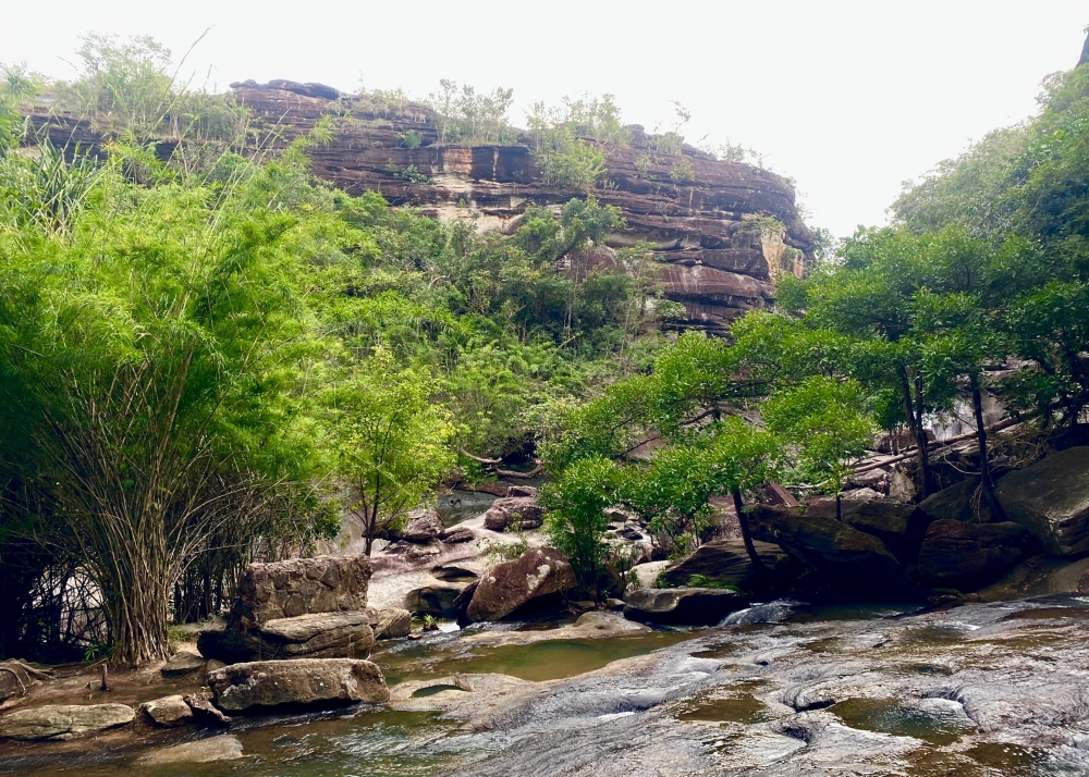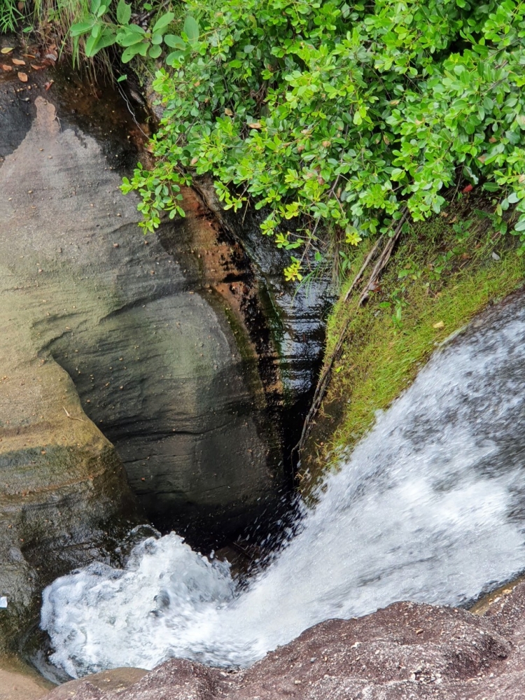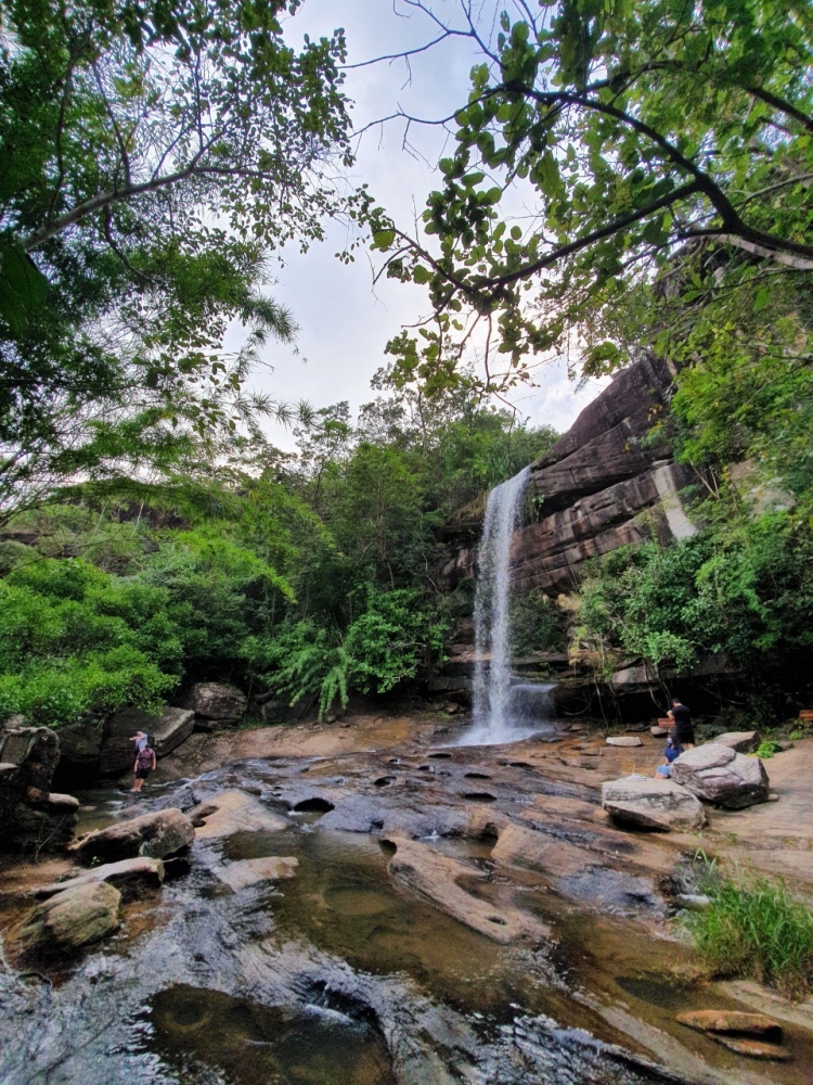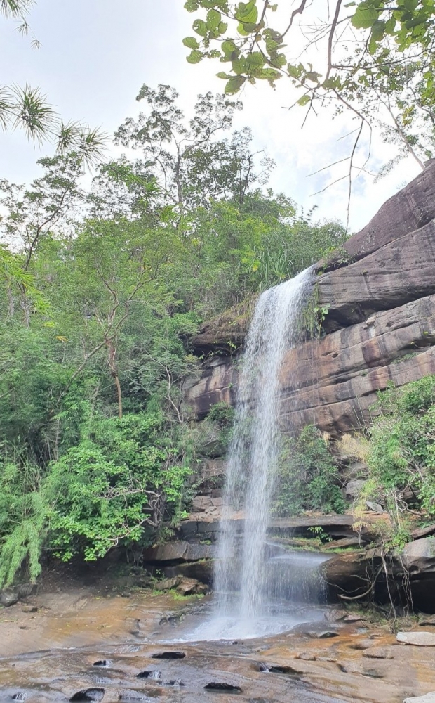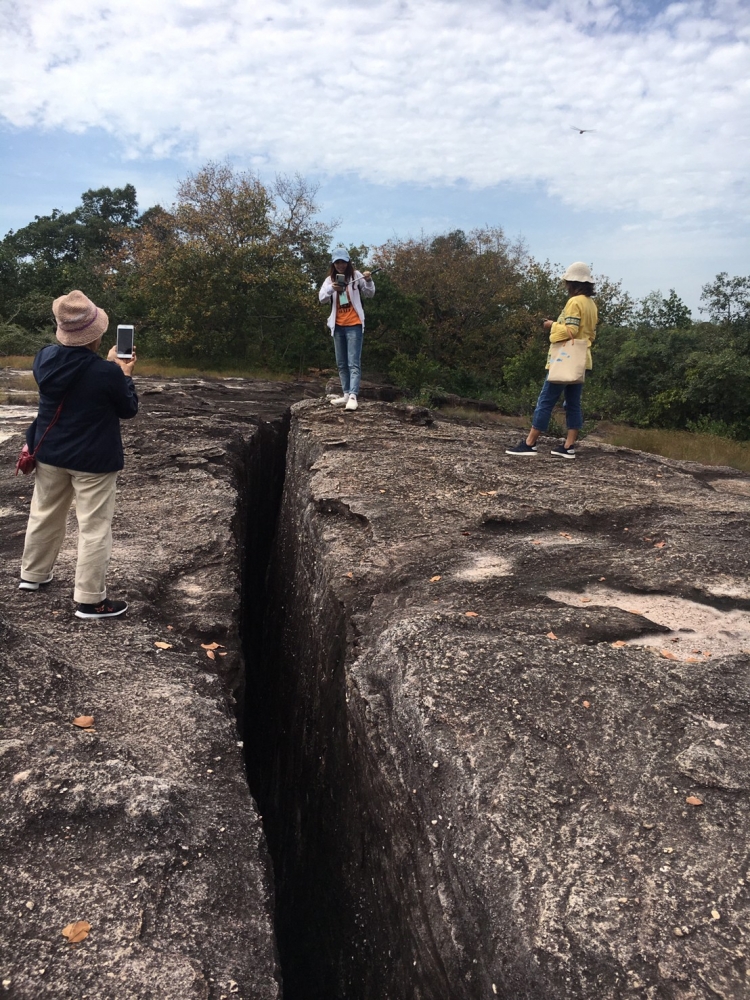ความสวยงามที่น่าอัศจรรย์ของธรรมชาติที่สร้างขึ้น เชิญชวนให้ผู้คนได้เข้าไปหลงเสน่ห์และสัมผัส เดอะแก๊งฯ ติดหล่มอยู่กับความสวยงามของธรรมชาติ จนต้องกระตุ้นกันเองว่า ไปต่อ>>กันเถอะ 5555 ไปต่อกันที่น้ำตกแสงจันทร์ หรือน้ำตกลงรู ตั้งอยู่ที่บ้านตั้งอยู่ที่บ้านทุ่งนาเมือง ตำบลนาโพธิ์กลาง อำเภอโขงเจียม น้ำตกแสงจันทร์เป็นน้ำตกขนาดเล็กที่มีมวลน้ำไม่มากนัก แต่มีความสวยงามมาก เพราะธรรมชาติที่รังสรรค์ให้เป็นรูที่เกิดจากการเซาะและการไหลผ่านของน้ำ ทำให้มีการกร่อนของหินเป็นรู ร่องน้ำตกจากด้านบนค่อนข้างสวยงานแต่ก็ซ่อนไปด้วยความน่ากลัว หากใครคิดอุตริไปถ่ายเซลฟี่ใกล้ๆ อาจมีสิ้นโดนกระแสน้ำพัดลงรู อึ๊ยยยย แค่คิดก็เสียวแล้ว