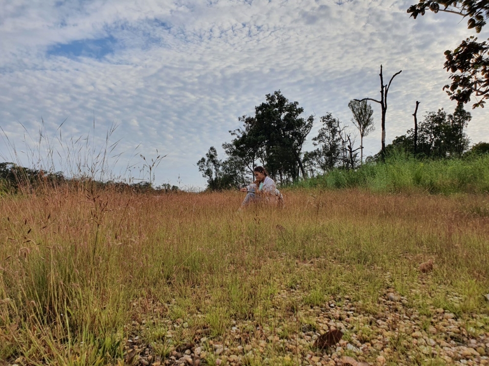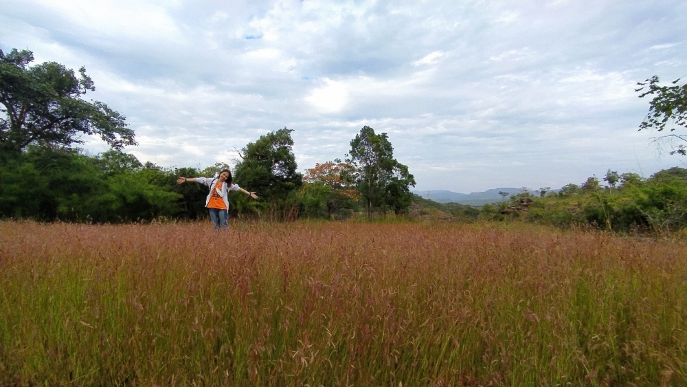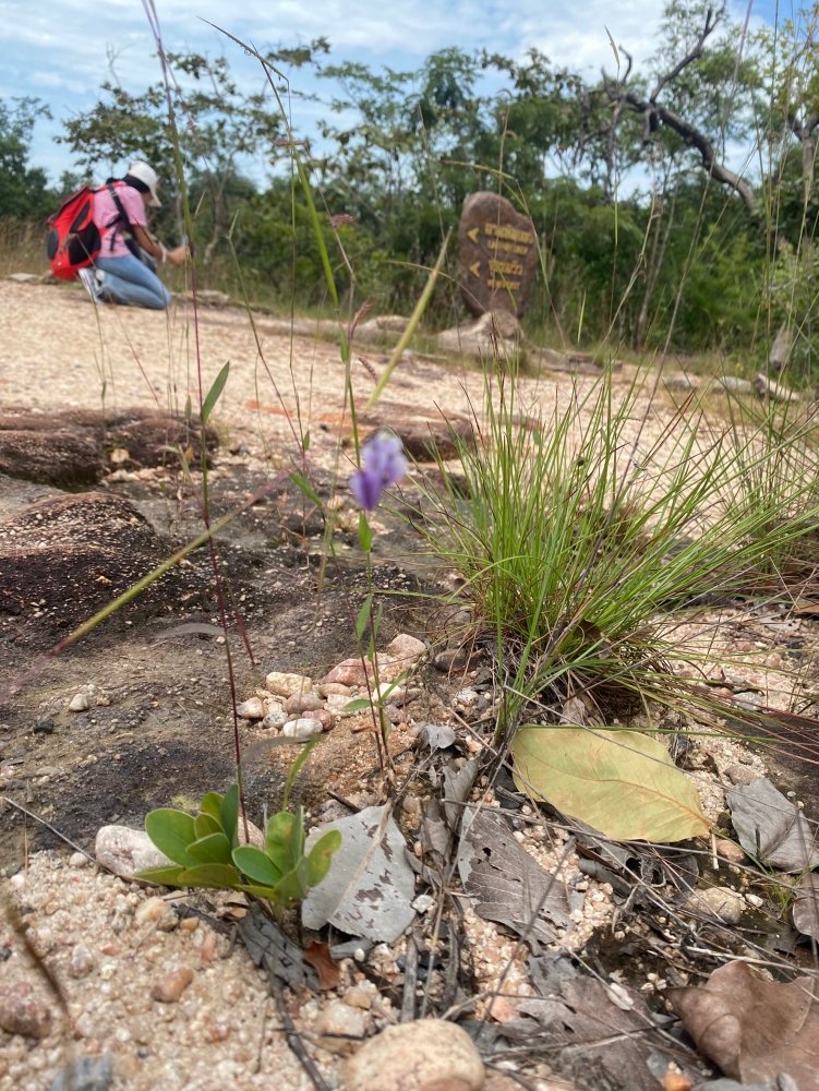 เส้นทางที่ต้องเดินเท้าเข้าไปประมาณ 600 เมตร สองข้างทางมีดอกไม้ป่าขึ้นพอหรอมแหรม เสียดายยยยย !!! ดอกไม้ยังไม่ออกดอก เพราะฝนเพิ่งจะหยุดตก แต่ดอกหญ้าขึ้นเต็มพื้นที่ ก็งดงามไปอีกแบบ เดอะแก๊งฯ เห็นแค่ดอกไม้ป่าเพียงช่อเดียวก็หยุดถ่ายรูปกันอย่างไม่เปลืองฟิล์ม เพราะไม่ได้ใช้ฟิล์มแล้ว 5555