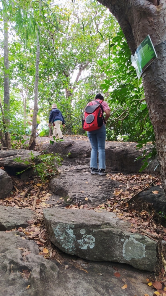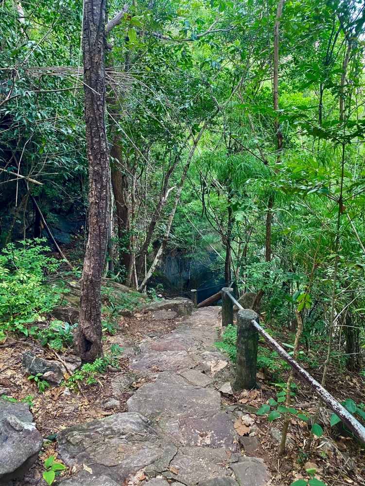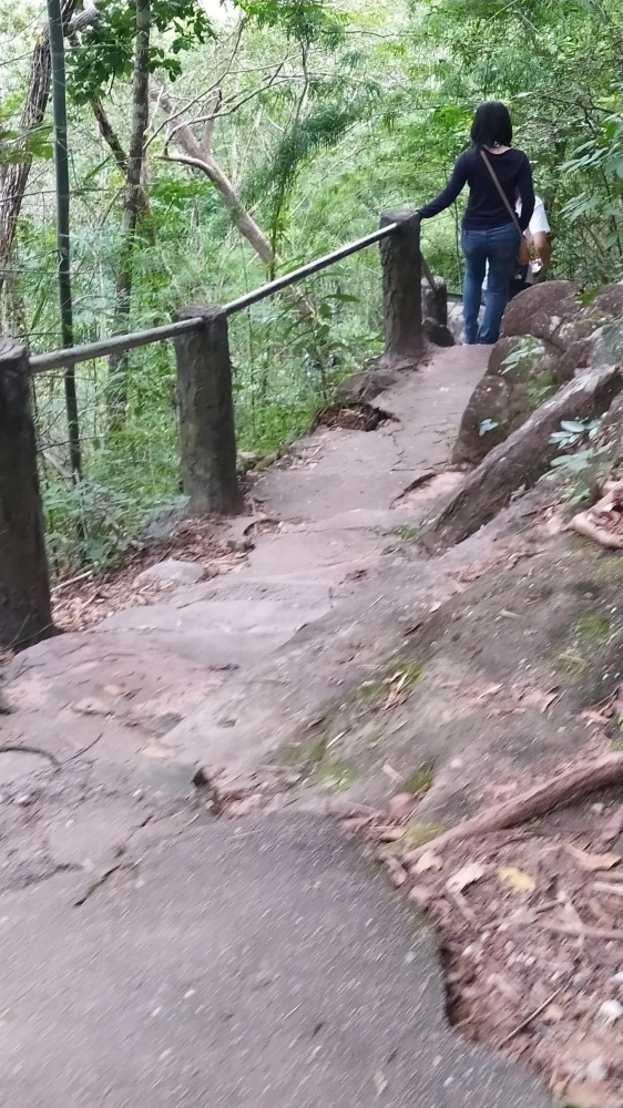 ทางไปน้ำตกขาลงจะสบายหน่อย แต่ขากลับนะสิ ต้องเดินเท้าขี้นบันไดและทางสูงชัน เดินสวนกับคณะนักท่องเที่ยวก่อนหน้าว่าแล้วทำไม พี่ๆ เขาถึงหอบเสียงดัง และหยุดพักเป็นจุดๆ รู้ซึ่งแหละ 5555 ดีนะที่เดอะแก๊งฯ เป็นทีมเดินป่า เส้นทางประมาณ 400 เมตร สบายๆ แค่หายใจเร็วและมีเสียงหอบถี่ๆ และเอาลิ้นออกมาตากลม สูดอากาศเข้าปอดมากกว่าปกติ ก็แค่นั้น แค่นั้นจริงๆ ^^ 5555