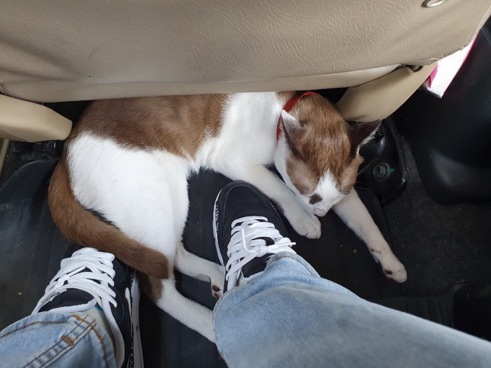 หายห่วง!!! นางเป็นแมวตัวผู้ที่น่ารักกกก รักความสะอาดมาก ขับถ่ายเป็นที่เป็นทาง และไม่ก่อกวนร้องเสียงดังให้รำคาญเพราะเดอะแก๊งฯ ทำทัณฑ์บนนางไว้แล้ว ว่าหากซนหรือดื้อจะทิ้งไว้ข้างทางเอาแบบไม่ให้กลับบ้านถูกกันเลย เพราะเราขนเสื้อผ้า อุปกรณ์และอาหารมาให้นางพร้อม ขอบอก สัมภาระเจ้าโตร่า ท้ายรถเกิน 60% เป็นของนาง แต่ทุกครั้งที่เดอะแก๊งฯ จอดรถ นางจะพยายามเอาตัวไปซุกใต้เบาะ และทำตัวเรียบร้อยไม่ส่งเสียงร้องเลย อืมมมม ทำตัวดีมากกกก 5555