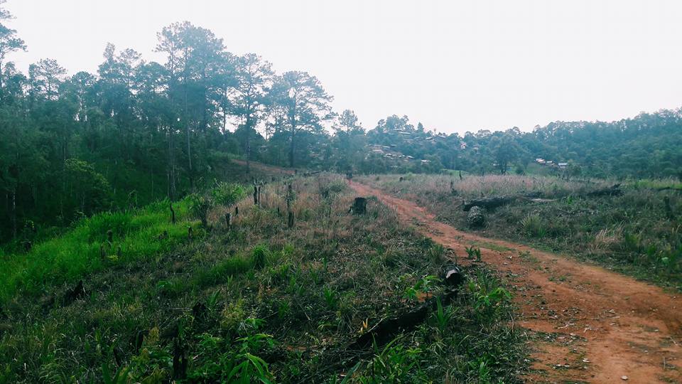 เดินสำรวจรอบๆหมู่บ้าน ชาวบ้านแถวนี้บอกว่าเดินเข้าไปดูนู่นเลย มีทำนาบนเขาด้วย นี่ดันเชื่อไง ความจริงเดินมาได้ไม่มีอะไร แต่ยุงเริ่มเยอะแล้วเริ่มเปลี่ยวด้วย เดินมาแป๊บเดียวแล้วขอถอยดีกว่า แต่คิดว่าถ้าเข้าไปลึกกว่านี้คงสวยและต้นไม้เยอะแน่นอน แต่มันจะรกขึ้นเรื่อยๆอ่ะดิ่ เลยถอยดีกว่า ถอยเพราะยุงล้วนๆ ยุงเยอะมาก