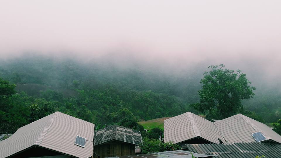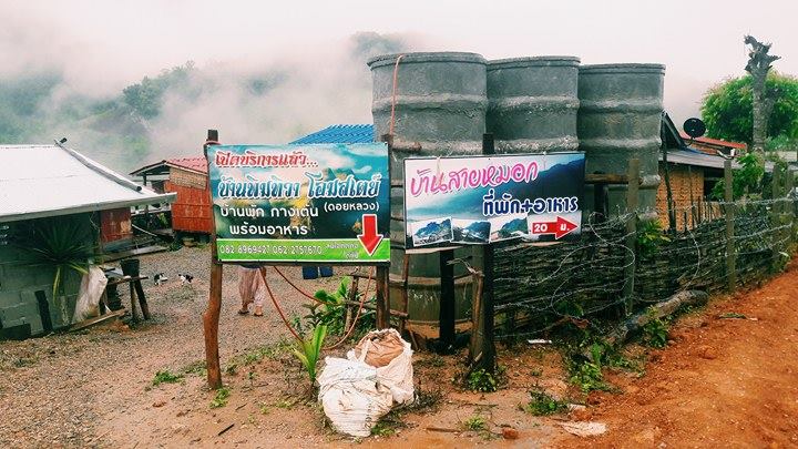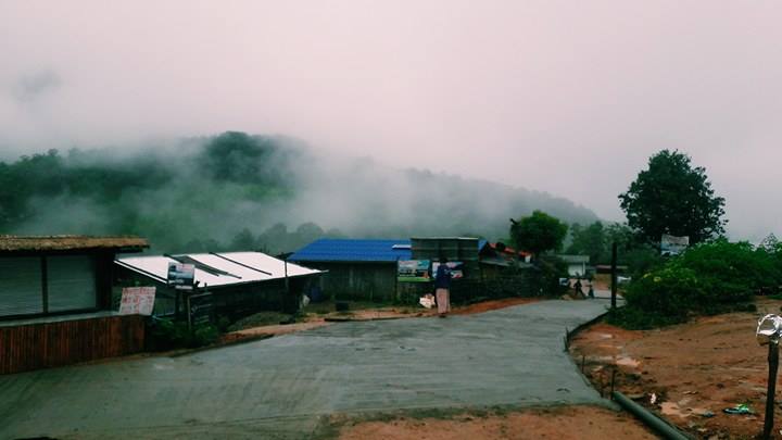 โอย...นี่ยังคิดอยู่ว่ามาแบบฟ้าเปิดขนานนี้ ถ้าฝนไม่ตกนี่แย่เลยนะ ใครๆก็ไม่ชอบหน้าฝนหรอก แต่ถ้าอยากเห็นหมอกฟินๆก็ให้เที่ยวหน้าฝนเป็นต้นไปก่อนหน้าหนาวเลย หมอกมาเต็มมาก ทำไรเสร็จแล้วก็ออกไปเดินแถวๆหมู่บ้านเช็คที่พักอื่นด้วย ที่พักราคาเดียวกันหมดเลย 500 บาท อาหาร 2 มื้อ เป็นของเย็นวันที่มากับเช้าของอีกวัน ใครหิวบ่อย ติดขนม แนะนำให้หอบมาจากเซเว่นข้างล่างด้วยนะ ร้านค้าไม่เห็นมีเลย แต่บางคนบอกว่ามี แต่ซื้อมาจากข้างล่างน่าจะถูกกว่าเยอะ มีหลายที่ทำเป็นร้านอาหารและร้านกาแฟ เอาใจนักท่องเที่ยวอยู่ประปราย