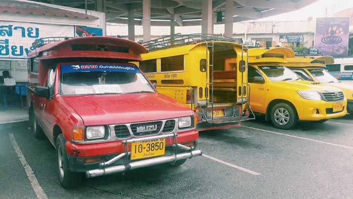 บอกคนขับว่าถึงโลตัสเชียงดาวให้บอกด้วย เค้าก็ตะโกนบอกอยู่นะ หรือเริ่มเข้าตัวเมืองแล้วก็พยายามสังเกตซ้ายมือไว้ ก็สังเกตซ้ายมือจะเห็นโลตัส ลงรถเดินเลยเซเว่นซ้ายมืออีกหน่อย มีซอยเล็กๆอยู่ขวามือ รถสองแถวจะอยู่แถวนั้น เป็นรถกระบะของชาวบ้านที่ถูกดัดแปลงเป็นสองแถวขับขึ้นเชียงดาว แต่กว่าจะออกอีกนาน มีเป็นรอบๆ เลยมาหาอะไรกินก่อน ข้าวขาหมูแถวนี้ก็อร่อยดี แต่ที่สำคัญกว่านั้นได้เพื่อนตั้งแต่ลงจากรถเลย เพราะเห็นน้องมาคนเดียว เดินงงๆ เลยอยู่คุยกันยาวเลยระหว่างรอรถ น้องบอกชอบเที่ยวคนเดียวเหมือนกัน นั่งรถไฟมาขบวนเดียวกันเลย แต่บนรถไฟไม่เห็น บอกว่าเมื่อก่อนก็เที่ยวกับเพื่อน แต่หลังๆเวลาไม่ตรงกัน เพื่อนไม่ชอบเที่ยวแนวเดียวกัน ก็ห่างๆกันไปบ้าง