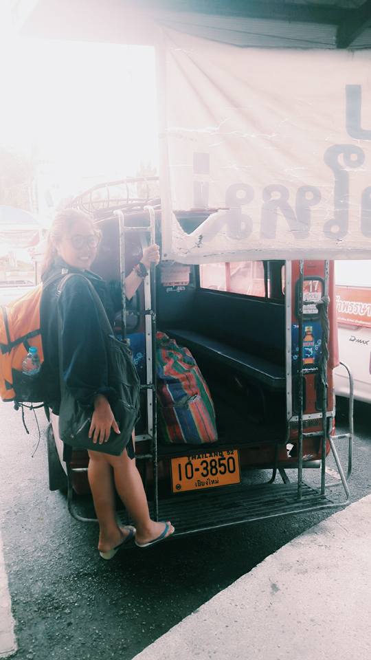 กลับแล้วจ้า นั่งรถแดงไปสถานีรถไฟอีก 20 บาท รูปนี้ขอให้คนขับรถช่วยถ่ายให้หน่อย อยากมีรูปโหนรถแดง