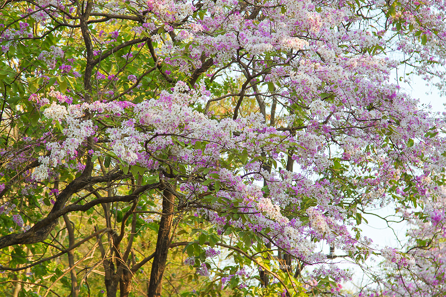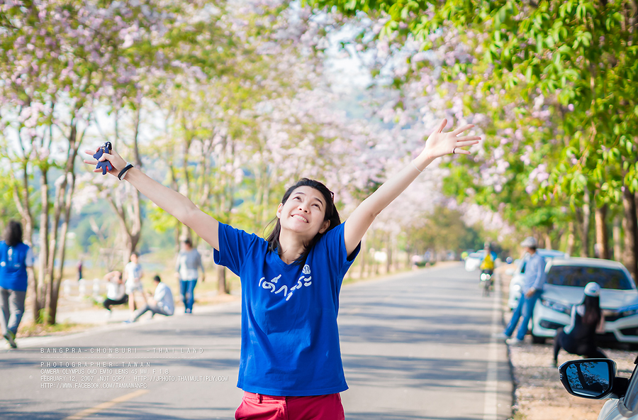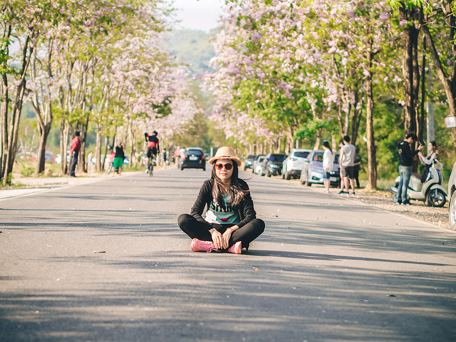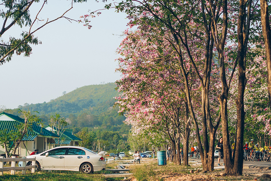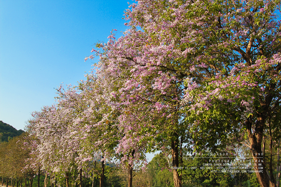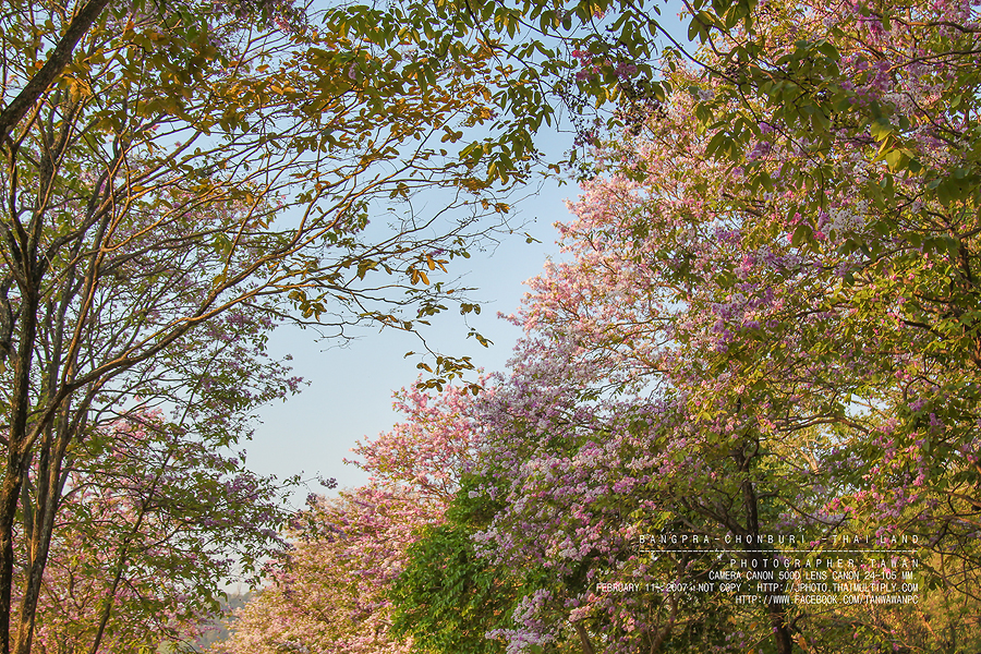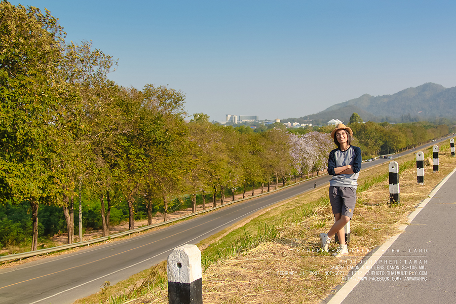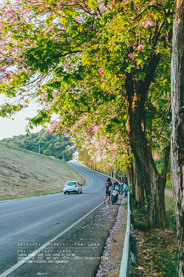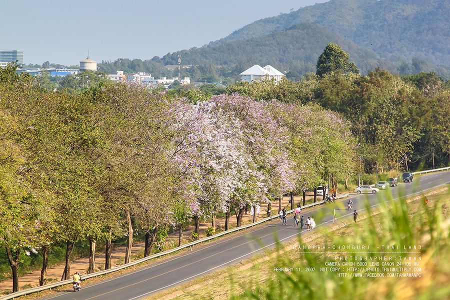 ถนนสีม่วงเมื่อดอกเสลาบาน ที่อ่างเก็บน้ำบางพระ จังหวัดชลบุรี