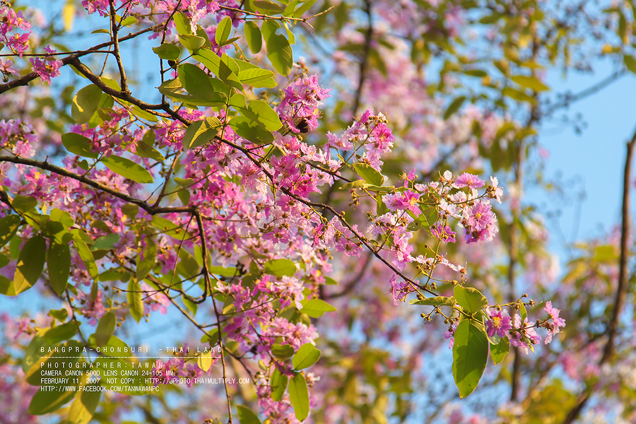 ไม่ได้ขึ้นเหนือ ชมพญาเสือโคร่ง ไม่ได้ไปถ่ายชมพูพันธ์พิทพ์ ที่กำแพงแสน เหมือนกับใครๆ ที่ไปกันอย่างล้นหลาม เราก็เปลี่ยนมาถ่ายดอกเสลา ทางภาคตะวันออก ที่ไม่ไกลจากบ้านเราก็ได้นี่นะ สวยเหมือนกัน อิอิ เราเดินทางจากปากช่อง ถึง อำเภอศรีราชา ใช้เวลาประมาณ 4 ชั่วโมง เนื่องจาก เป็นประเภท ชอบหลง ขับรถไม่เก่ง และขับรถไม่เร็วมาก 80-100 กิโลเมตรต่อชัวโมงเท่านั้น โดยไปพักกับน้องที่ศรีราชา ตื่นเช้าออกจากศรีราชา เกือบ 8.00น. ใช้เวลาเดินทางมาถึงอ่างเก็บน้ำบางพระ ประมาณ 30 นาที ก็เอาภาพโดยรวมมาให้ชมกันนะคะ แต่ที่เสียดาย คือ ยังไม่ได้ถ่ายรูปบริเวณสันอ่างเก็บน้ำ แบบว่า ยังบ้าดอกสีม่วงกันอยู่ เลยทำให้แดดร้อน และสายเกิน ต้องไปเก็บภาพใหม่รอบหน้า แหะๆ บริเวณอื่นๆ รอบๆ ยังมีที่ให้ถ่ายภาพได้อีกค่ะ ไม่แน่ใจว่าช่วงนี้มันโรยหรือยัง ใครจะไปเที่ยว ก็ลองหาข้อมูลก่อนไปด้วยนะคะ จะได้ไม่เสียเที่ยว