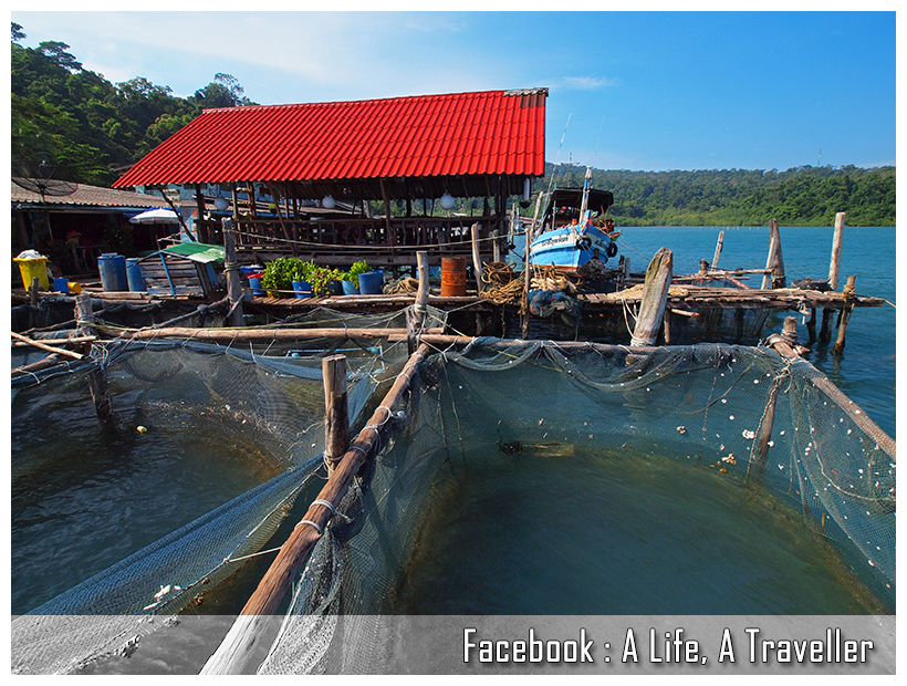 วันที่สามยังมีมอเตอร์ไซค์ให้ใช้ถึงก่อนเที่ยง กินข้าวเสร็จเลยพาก๊วนไปจนสุดถนนเกาะกูดด้านทิศใต้ที่อ่าวใหญ่ เป็นชุมชนประมงใหญ่ที่สุดบนเกาะกูด บ้านเรือนยื่นลงไปในทะเล ใครอยากกินซีฟู๊ดสดๆ ต้องมาที่นี่เลย มีฝรั่งกรุ๊ปหนึ่งมาเดินเที่ยวกันด้วย สะพายกล้องตัวเบ้อเร่อกันทุกคน ดีใจครับที่เขาติดใจอยากมาดูวิถีแท้ๆ ของคนบ้านเรา