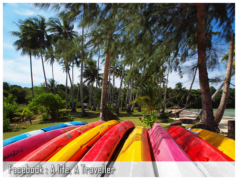 ที่อาณาเลมีคายัคจอดริมหาดเรียงรายเลือกลำไหนตามสบาย ที่ไม่สบายคือไม้พายครับ ค่าเช่าชั่วชั่วโมงละร้อย ทั้งวันสามร้อย ใครอยากประหยัดตังค์ลองเอากาบมะพร้าวไปพายได้ก็เชิญเลย!