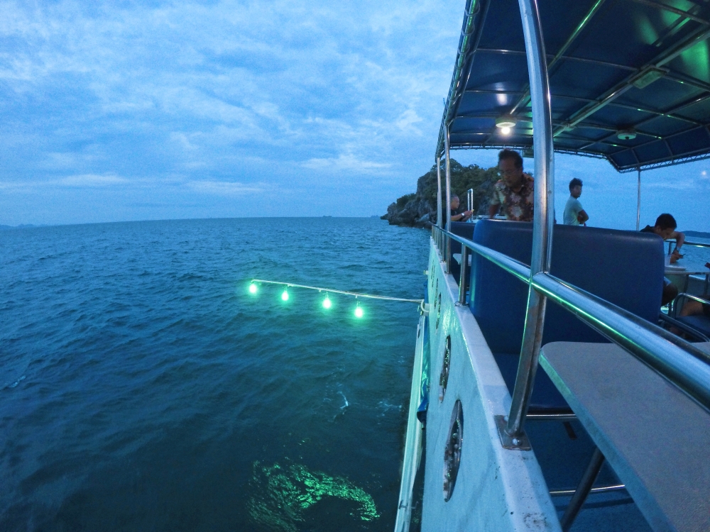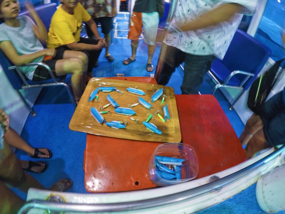 ตกกันไปเรื่อยๆ ได้มั่ง ไม่ได้มั่ง บางคนปล่อยอารมณ์ที่ชั้น2 ออ เค้ามีอาหารเย็นให้กินบนเรือ หมึกที่ตกได้ก็ทำกินเลย หวานมากกกก กินสดก็ได้...