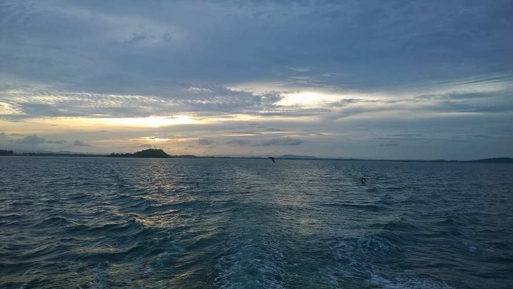 แยกย้ากันลงเรือ เรือล่องตามคลองเดิมออกทะเล มุ่งตรงไปเกาะง่าม