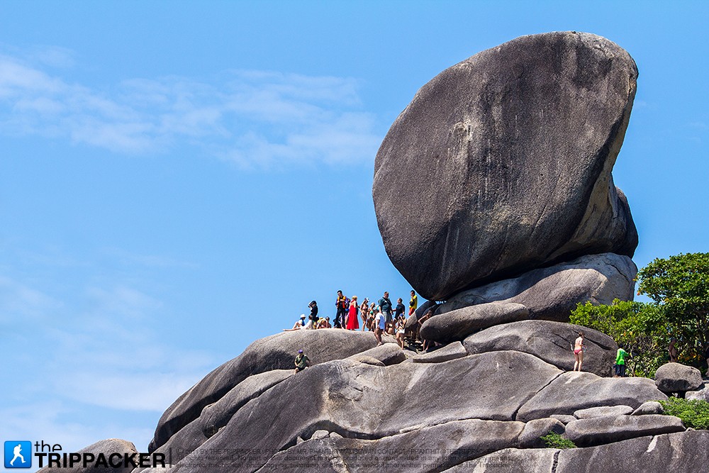 พอจะได้กลับไปเที่ยวสิมิลันอีกครั้งเราก็รู้สึกตื่นเต้นจนเกือบจะนอนไม่หลับ แถมยังรีบมาเช็คชื่อเตรียมลงเรือกันแต่เช้า จัดแจงขอยืมอุปกรณ์ดำน้ำครบเซ็ทแล้วก็นั่งกินอาหารเช้ารอไกด์เรียกลงเรือ อ้อ! ลืมบอกไปว่าครั้งนี้เรายังคงใช้บริการจาก “Love Andaman”เหมือนเดิมแล้วก็เป็นไปตามธรรมเนียมครับ ก่อนลงเรือเราก็จะได้ทำความรู้จักกับ “หมู่เกาะสิมิลัน” แบบคร่าวๆ กันก่อน ซึ่งคำว่า “สิมิลัน” มาจากภาษายาวีแปลว่า “9” อันหมายถึง 9 เกาะสำคัญของหมู่เกาะอันดามัน ได้แก่ เกาะหูยง (เกาะ 1) เกาะปาหยัง (เกาะ 2) เกาะปาหยัน (เกาะ 3) เกาะเมียง (เกาะ 4) เกาะห้า เกาะปายู (เกาะ 6) เกาะหินปูซาร์ (เกาะ 7) เกาะสิมิลัน (เกาะ 8) และเกาะบางู (เกาะ 9) แต่ปัจจุบันมีเกาะอยู่ในความดูแลของอุทยานแห่งชาติหมู่เกาะสิมิลันทั้งหมด 11 เกาะ ซึ่งนับรวมเกาะบอน และ เกาะตาชัยเอาไว้ด้วย สิ้นเสียงไกด์บิวที่แจ้งข้อควรปฏิบัติและห้ามต่างๆ ในระหว่างเดินทางแล้ว เราก็พร้อมถอดรองเท้าทิ้งไว้บนฝั่งและโดดลงเรือกันเลย