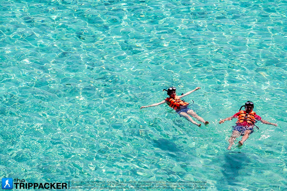 เราทะยานฝ่าคลื่นลมด้วยความเร็วกว่า 40 น๊อตของ Speed Boat ที่เร็วที่สุดในท่าทับละมุ ใช้เวลาเพียงชั่วโมงเศษๆ ก็มาถึงเกาะเมียง หรือ เกาะ 4 เราลงเรือกันที่หาดด้านหน้าที่ทำการอุทยานฯ แล้วเดินเท้าผ่านเส้นทางศึกษาธรรมชาติไปอีกประมาณ 300 เมตร ก็มาถึง“หาดเล็ก” หรือ “หาดเจ้าหญิง” ชายหาดขาวสะอาดตาที่อยู่ทางฝั่งตะวันออกของเกาะ บริเวณนี้เหมาะสำหรับการดำน้ำตื้นชมแนวปะการังขนาดเล็ก รวมถึงลงเล่นน้ำทะเลใสๆ บนชายฝั่ง หรือแม้กระทั่งเดินไปชมวิวสวยๆ บนโขดหินทางด้านขวาของหาดก็น่าสนุกไม่แพ้กัน พอออกแรงว่ายไปดำน้ำตื้นได้พักใหญ่ พลังงานจากอาหารเช้าก็หมดเกลี้ยง จึงต้องรีบว่ายกลับมาเล่นน้ำใกล้ๆ ฝั่งแทน อีกไม่กี่อึดใจก็มีเสียงสวรรค์มาบอกให้รู้ว่าได้เวลาอาหารกลางวันแล้ว ซึ่งทางLove Andaman จัดอาหารกลางวันชุดใหญ่รอท่าอยู่ใกล้ๆ ที่ทำการอุทยานฯ นั่นแหละ จะด้วยความหิวหรือความตะกละส่วนตัวก็ไม่แน่ใจที่ทำให้เราตักอาหารมาจนเต็มจาน ทั้งต้มยำ ส้มตำ ปลาทอด ผัดผัก มัสมั่น ผัดหมี่ ตบท้ายด้วยสัปปะรด แตงโม และน้ำอัดลมอีกแก้วใหญ่ ถ้าไม่เรียกว่าอิ่มจนจุกก็ไม่รู้ว่าใครจะมารับเลี้ยงไหวแล้วล่ะครับ อิ่มจนแทบกลิ้งแบบนี้เราเลยทำได้แค่กิจกรรมเบาๆ อย่างเดินเก็บภาพบรรยากาศ นอนกลิ้งไปบนหาดทรายขาวๆ ให้น้ำทะเลซัดสาด แล้วก็แอบมองฝรั่งนอนอาบแดดไปพลางๆ จนได้เวลาขึ้นเรือไปยังจุดดำน้ำจุดต่อไป