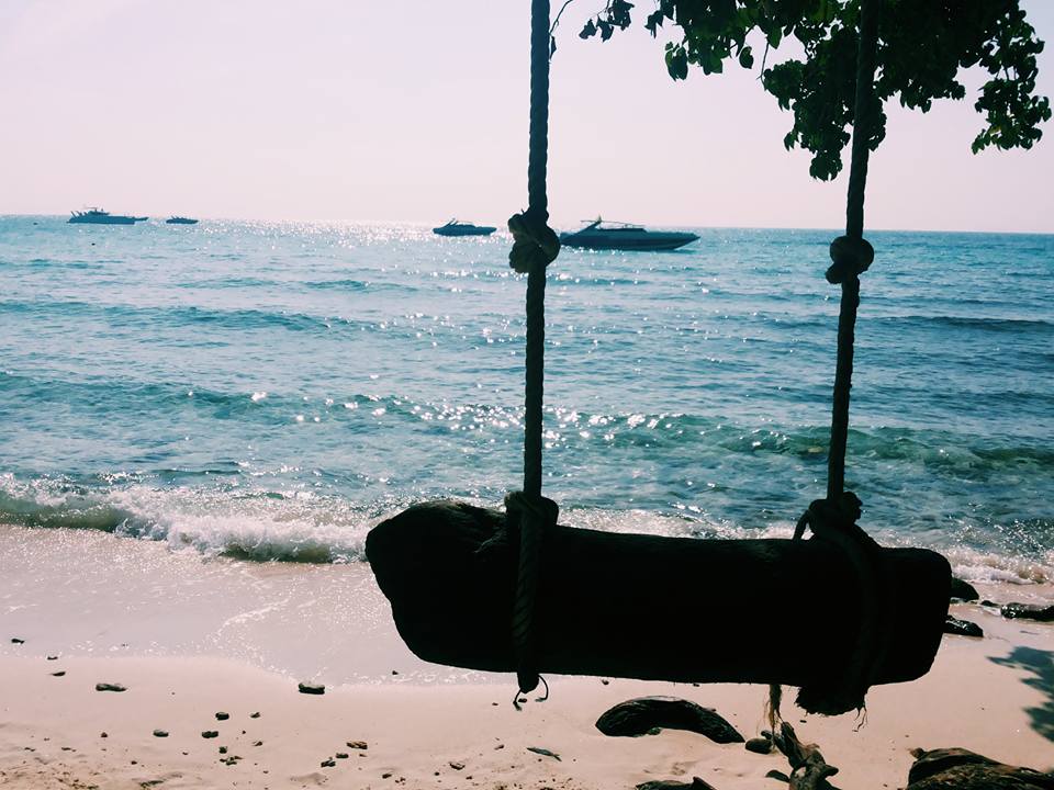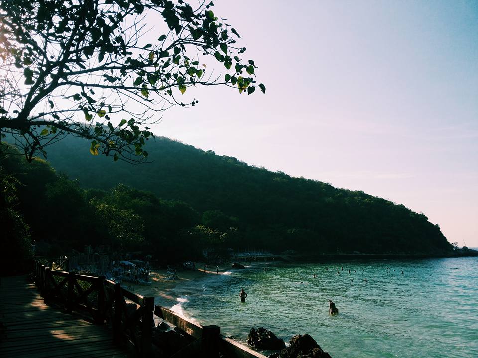 เอ้อระเหยจนใกล้เย็น ก่อนจะขึ้นเรือรอบสุดท้าย 6 โมงเย็นกลับพัทยา พระอาทิตย์ก็คล้อยต่ำลงไปทุกที คาดว่าจะไปได้อีกซักสองหาดมั้ย ลัดเลาะไป "หาดสังวาลย์" หาดเล็กๆที่อยู่ข้างหาดตาแหวน หลายปีก่อนมาที่นี่ไม่ได้เป็นแบบนี้นะ ค่อนข้างส่วนตัว เงียบ เหมือนหาดส่วนตัวเลย แต่เดียวนี้คนก็เยอะขึ้น