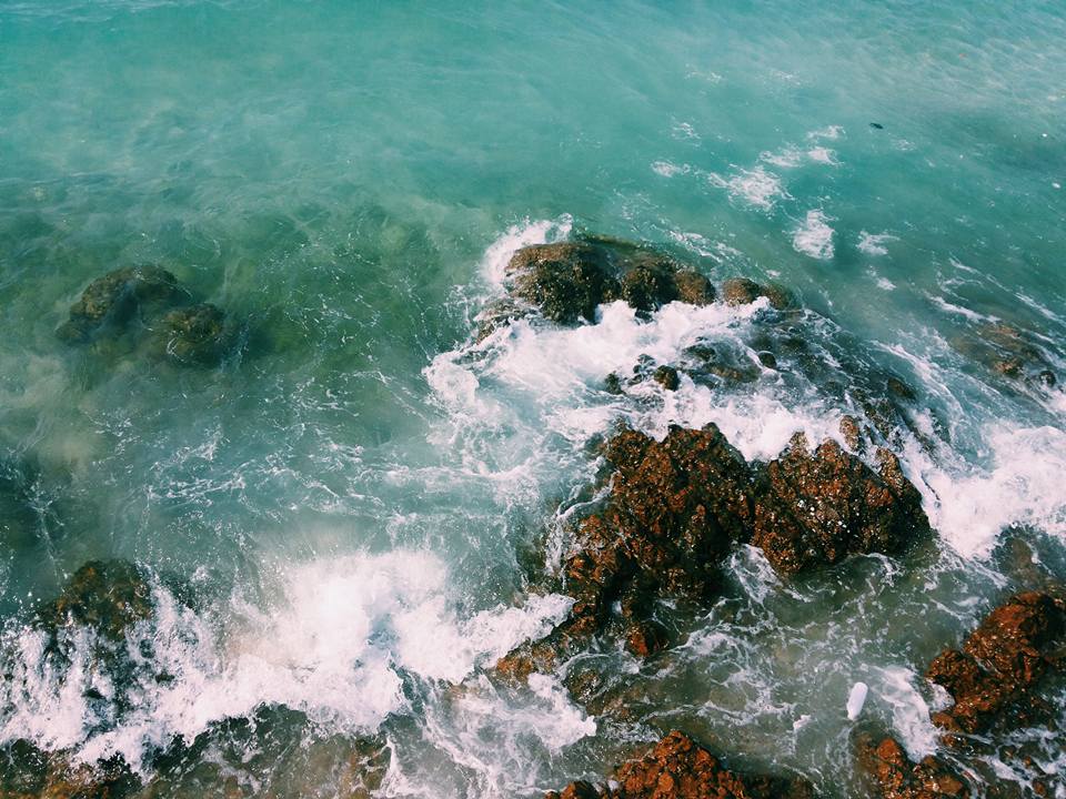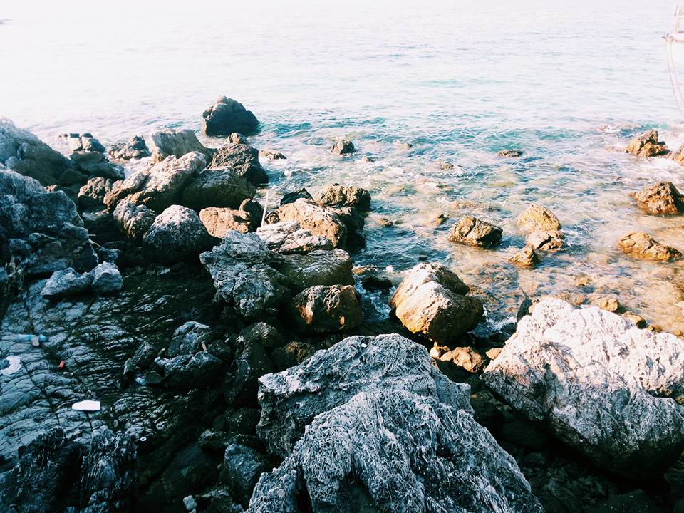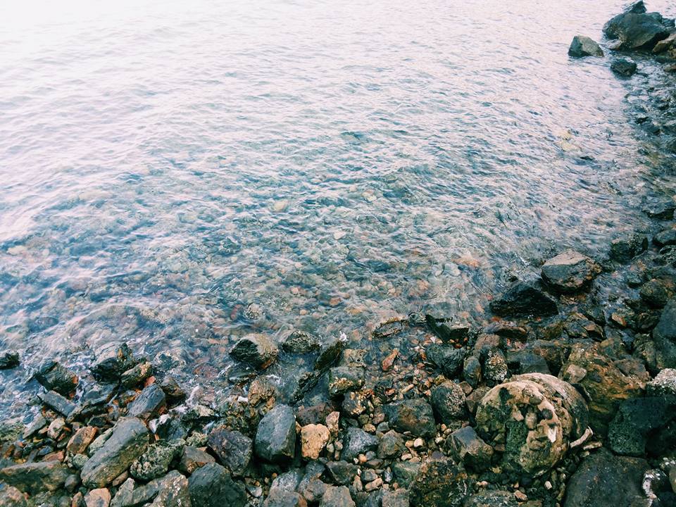 น้ำใสทั้งเกาะ ส่วนที่ใสที่สุดก็คงเป็นตามโขดหิน ไม่มีใครเล่นน้ำ
