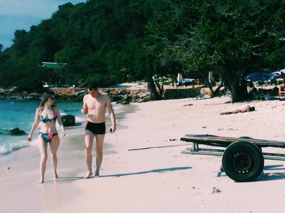 ความจริงหาดนี้ควรจะมาตอนเย็นนะ เพราะเป็นจุดชมพระอาทิตย์ตกที่สวยที่สุดของเกาะน่าจะได้ แต่นี่เรามาแบบวันเดียว มาแค่ไม่กี่ชั่วโมงด้วย ทำเวลานิด แดดเปรี้ยง แต่ทะเลใสก็ชื่นใจแล้ว